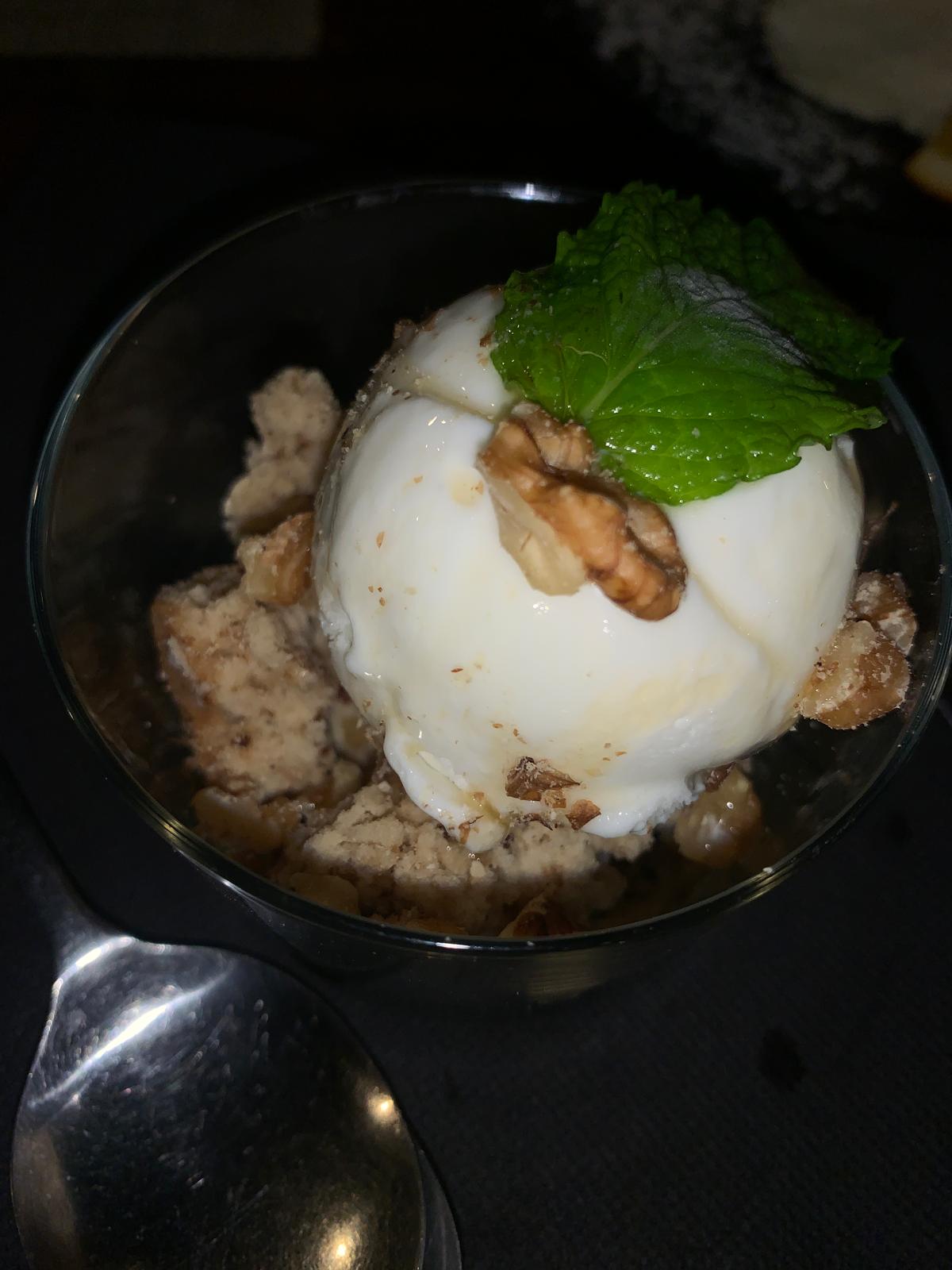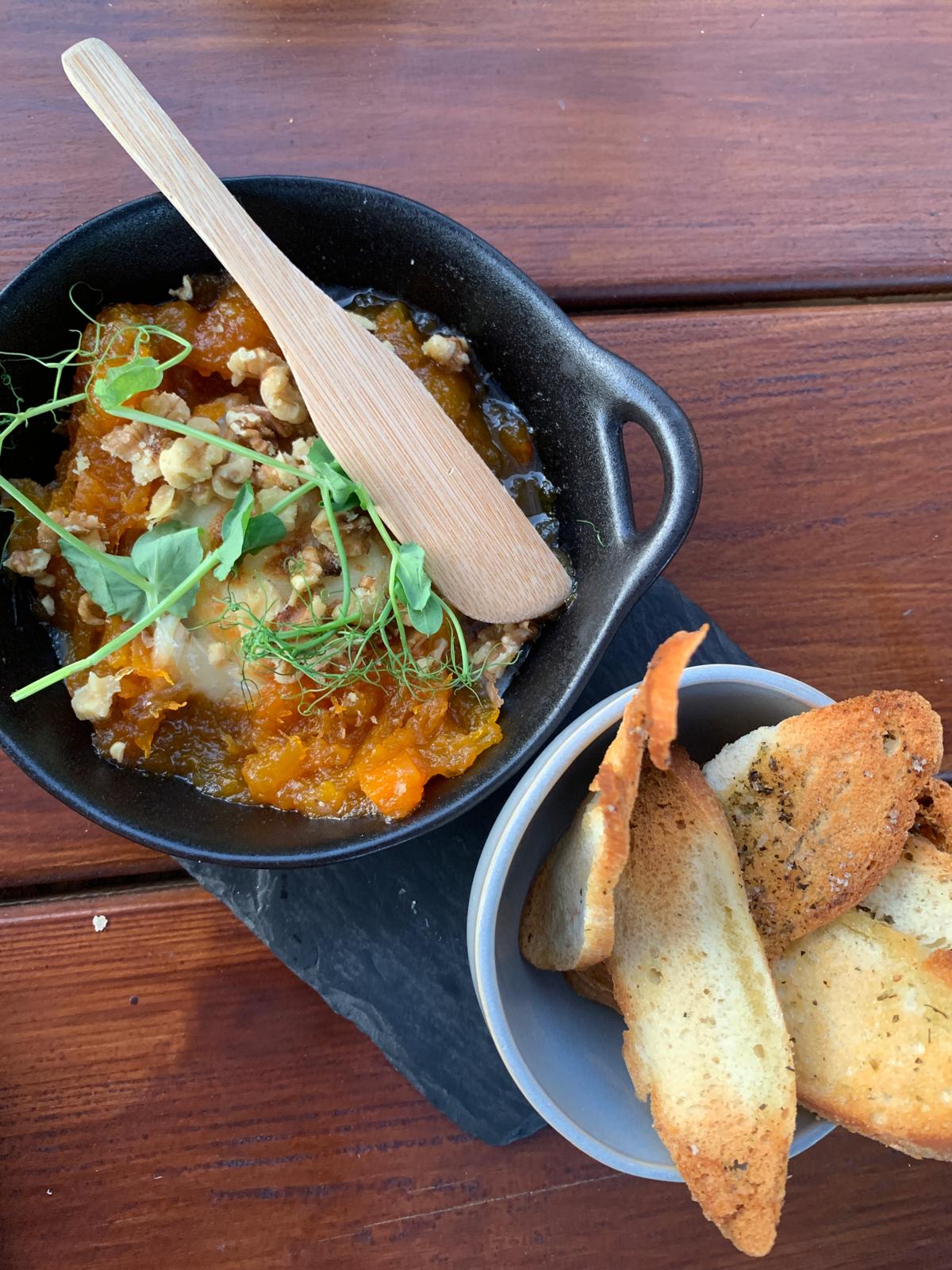 Da ementa constam também opções deliciosas como o folhado de queijo com figo (5€), o presunto bísaro (8€), o bolo do caco (4€) e o queijo chévre no forno com doce de abóbora e mel (7€). As sobremesas, que custam 6€, são, a nosso ver, a vertente menos forte: semi frio de chocolate branco com terra cacau e gel de laranja, desconstrução de bolo de noz com gelado e redução de espumante, crème brûlée e mousse de pistácio.
