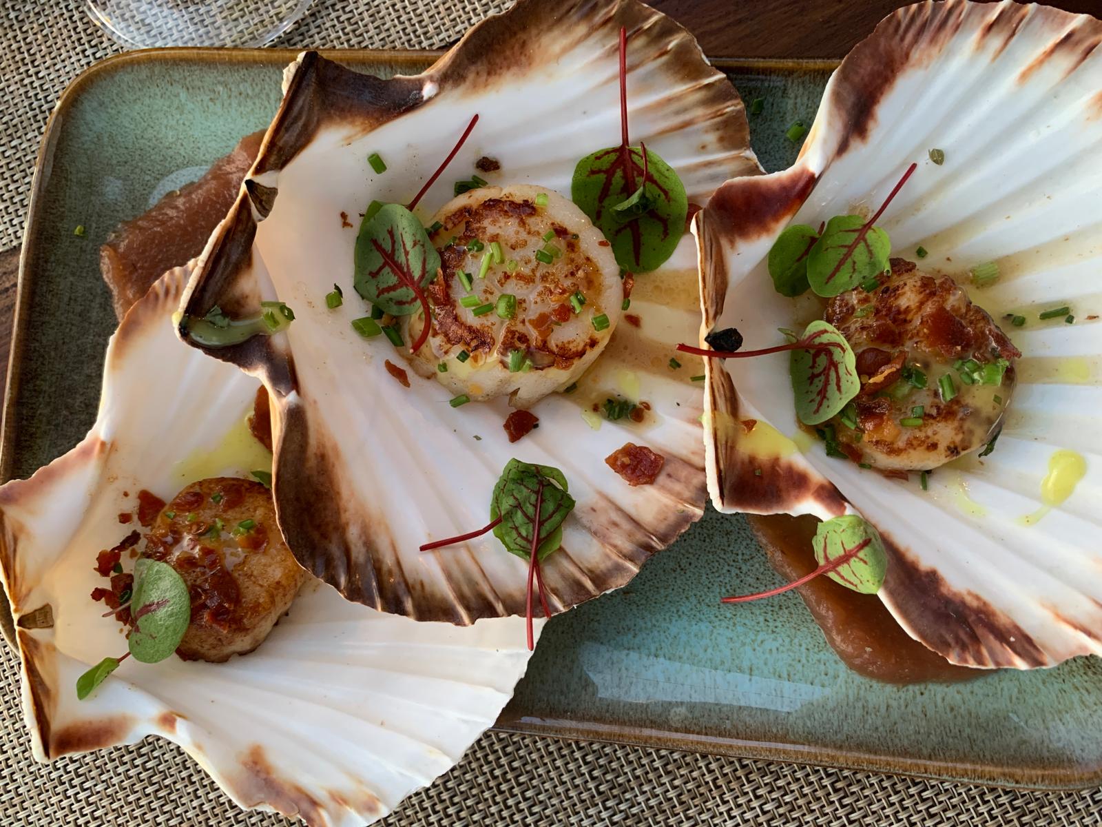 O destaque, segundo o dono, vai ainda para as vieiras com puré de maçã, crocante de presunto e molho vinagrete (12€/3un), para o medalhão da vazia black angus com molho de queijo de Azeitão (17€), para o polvo glaceado com cebola roxa e couli de pimentos (14€) e para os ovos rotos com presunto (10€).