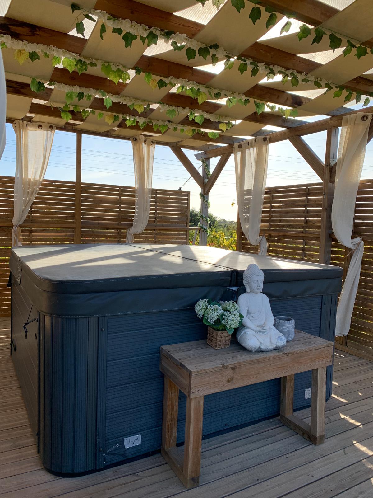 Existe ainda um jacuzzi partilhado (e sim, há wi-fi). Para começar o dia, é-lhe entregue uma cesta de piquenique com café, leite, sumo de frutas, pão regional queijo, fiambre, manteiga, croissants, requeijão, compotas, iogurte com granola e frutos vermelhos e fruta da época.