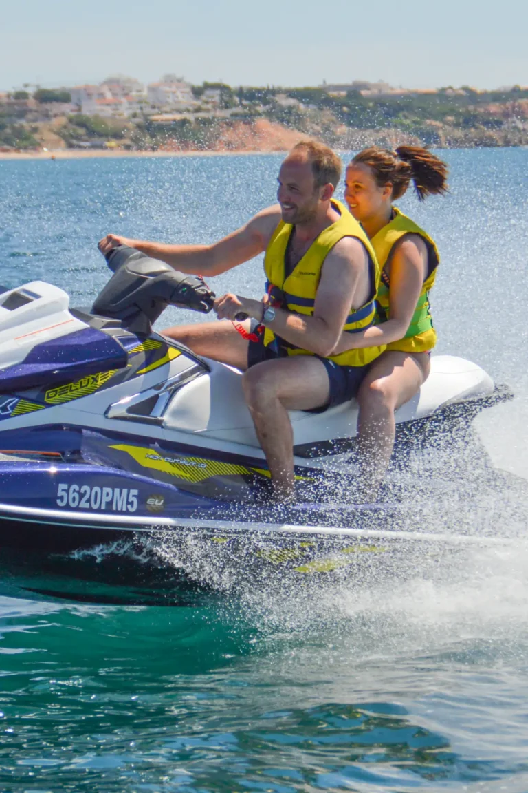 Velocidade, sal no rosto e aquela sensação de liberdade: andar de jet ski na Praia da Oura, no Algarve, é a receita para um dia épico. Com a Ski Molhado, pode reservar já a sua mota de água por 20 a 30 minutos com um custo de até 90€ por pessoa.