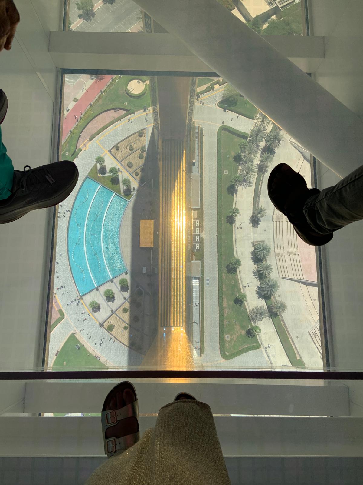 Ao entrarmos nesta moldura gigante, enquanto esperamos na fila para subir, passamos numa espécie de museu que nos dá a conhecer melhor a cultura. No topo, há um café, paredes envidraçadas e também chão de vidro (para os mais corajosos). À saída, mostram-nos aquilo que projetam para o futuro deste Emirado.