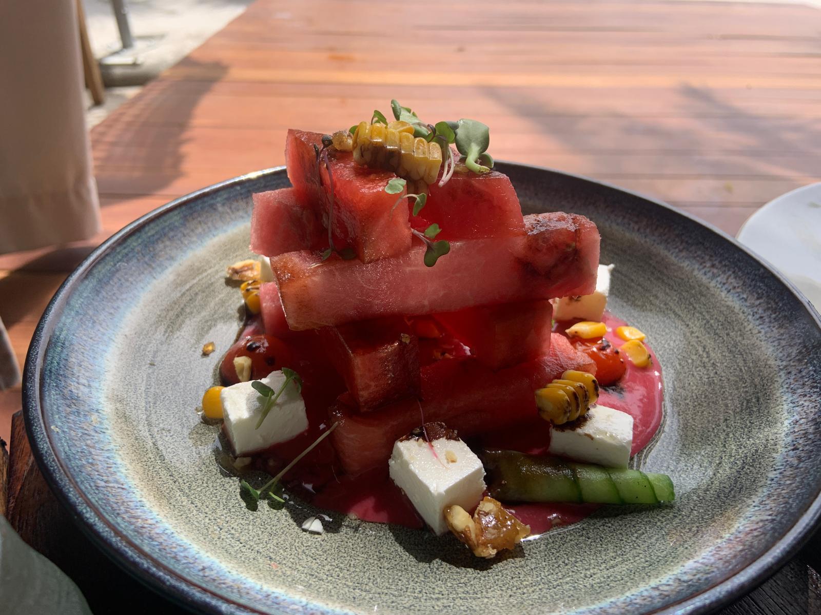 Para matar a fome, tem propostas como nachos (16€), salada de camarões grelhados (22€), bao de frango (18€), batatas trufadas (14€), salada de melancia e feta (18€), fish and chips (27€), butter chicken (27€), esparguete à bolonhesa (22€), smash burger (23€), camarões tigre grelhados (49€), pizzas desde (18€), cheesecake de lotus (13€) e travessa de fruta da época (19€).