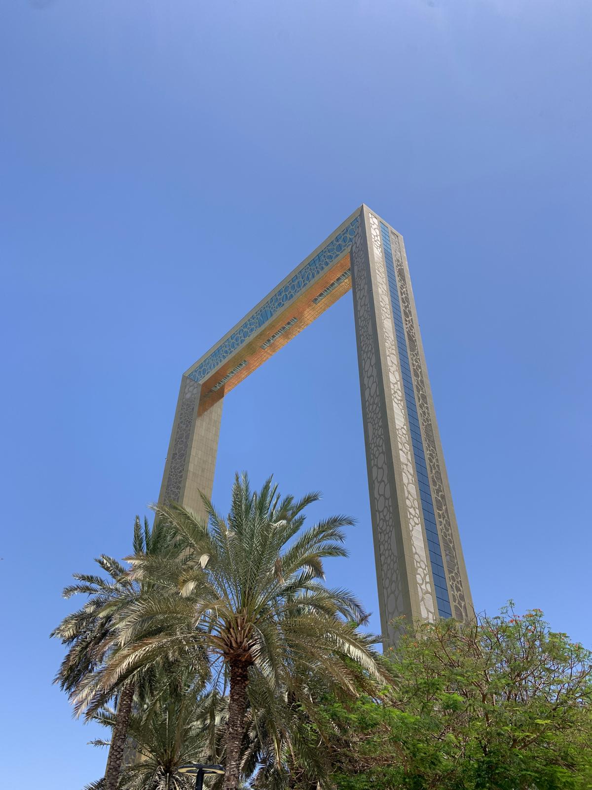 A Dubai Frame é um dos principais pontos turísticos do Dubai. Criada em 2018, é a maior moldura do mundo, com 150 metros de altura (cerca de 50 andares). Além da componente estética, serve como miradouro, que nos permite olhar para o Dubai antigo e o Dubai novo e entender o contraste.