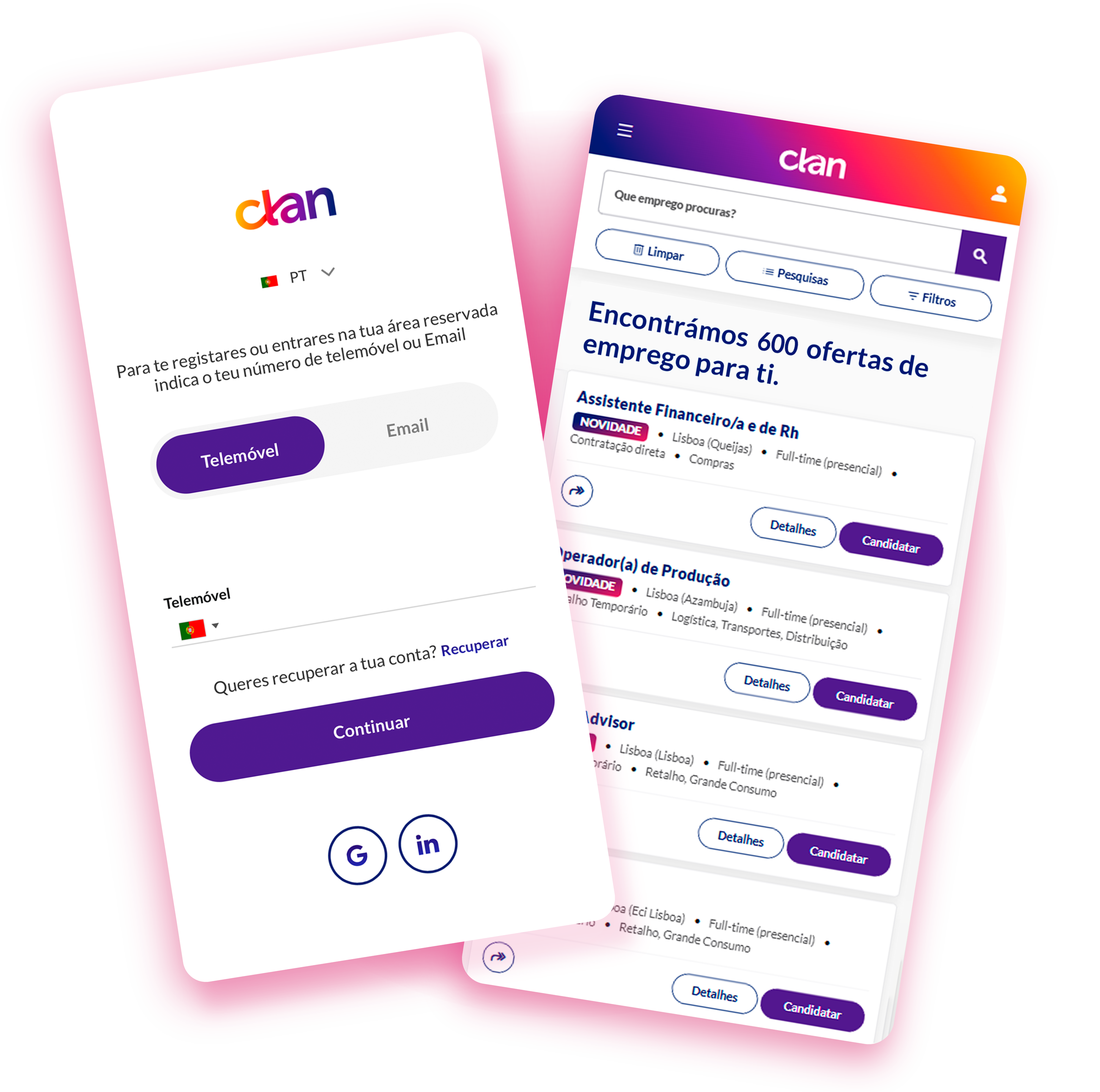 Com mais de 30 anos de experiência no mercado, o Clan acaba de anunciar a abertura de 500 vagas de norte a sul para esta época do ano. As oportunidades surgem em empresas como Parfois e DPD e para um vasto leque de funções, desde Promotores, Operadores de Produção, Assistentes e Operadores de Armazém até Operadores de Triagem.