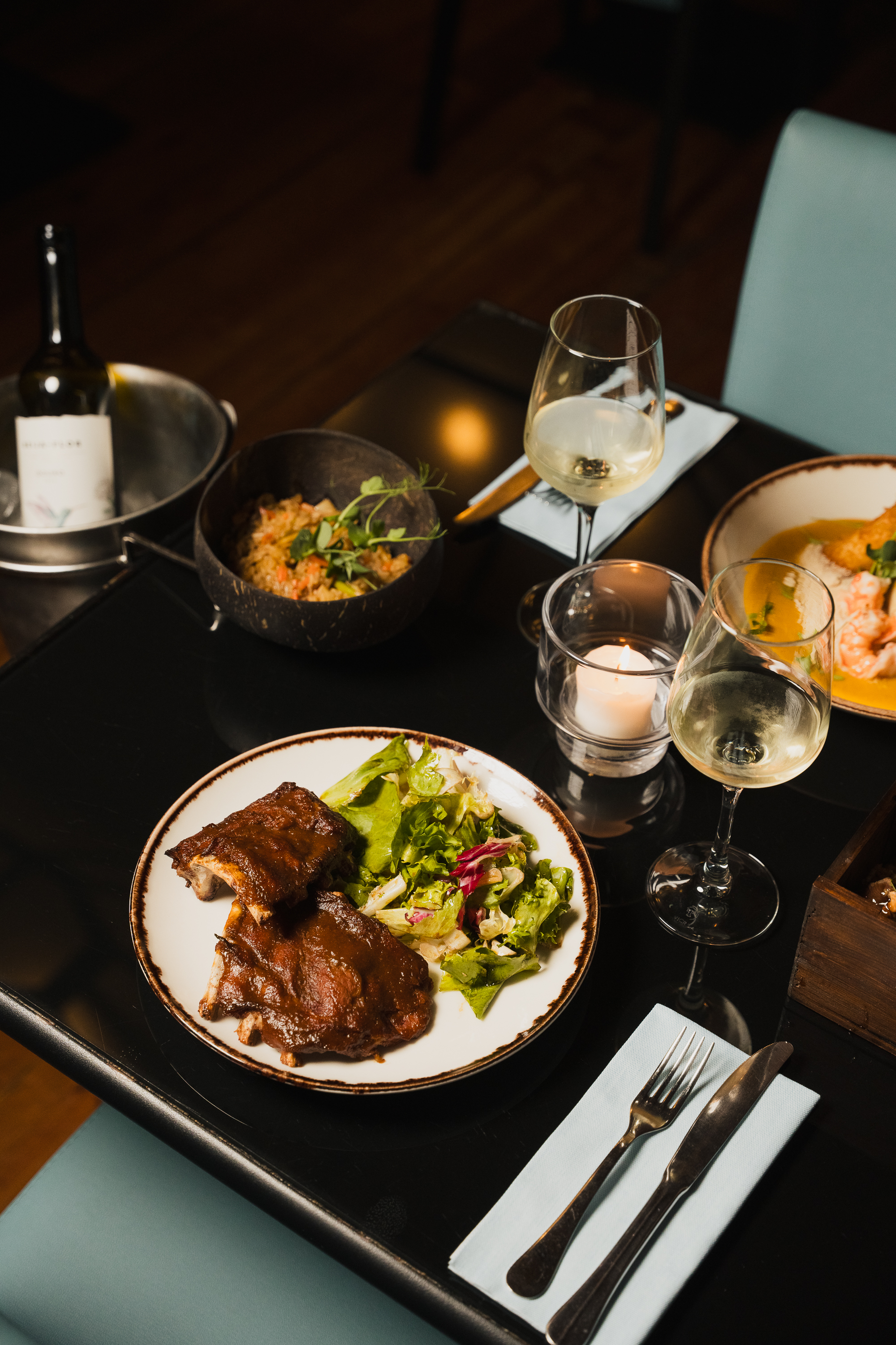 Peito de pato corado com redução de carne e vinho do Porto, risotto com cogumelos e trufa laminada ao momento (24€), a moqueca de corvina com camarão, banana frita, arroz frito e farofa (22€), a cracker de tapioca com maionese de cebola, ribeye wagyu, compota de chalotas, foie gras e teriyaki (18€) são algumas das opções.