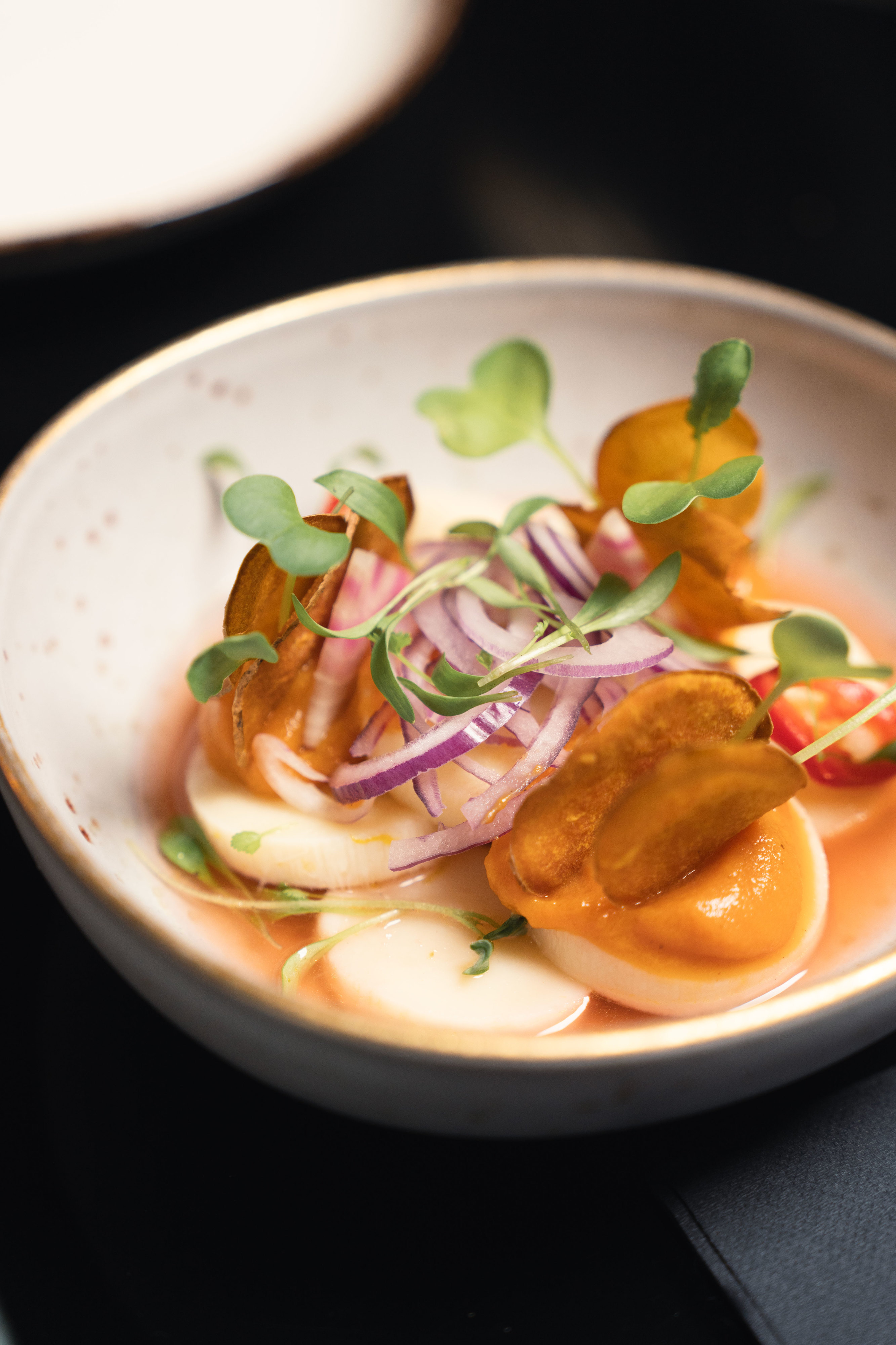 Não deixe de provar o gunkan de vieira macerada em cítricos, ikura de salmão e crocante de milho (17€), a pannacotta de chocolate branco com calda de framboesa e água de rosas, granizado de lichia e framboesa crispy (7€) e o merengue com sorbet de yuzo, gelado de ananás, couli de maçã verde e crocante de corn flakes (7€).