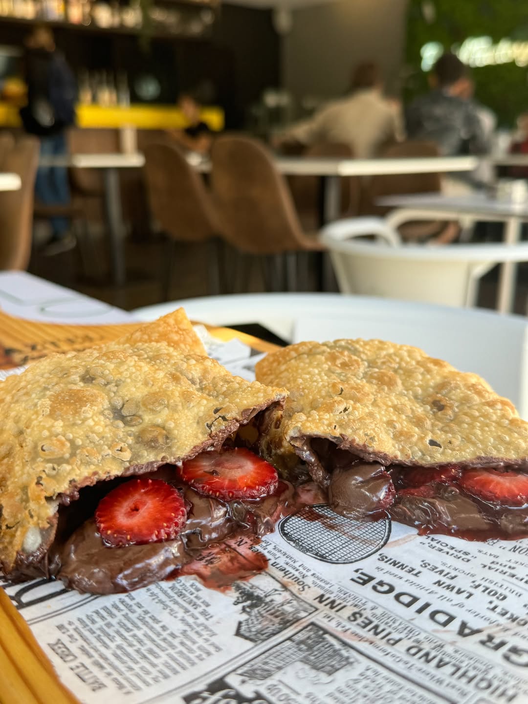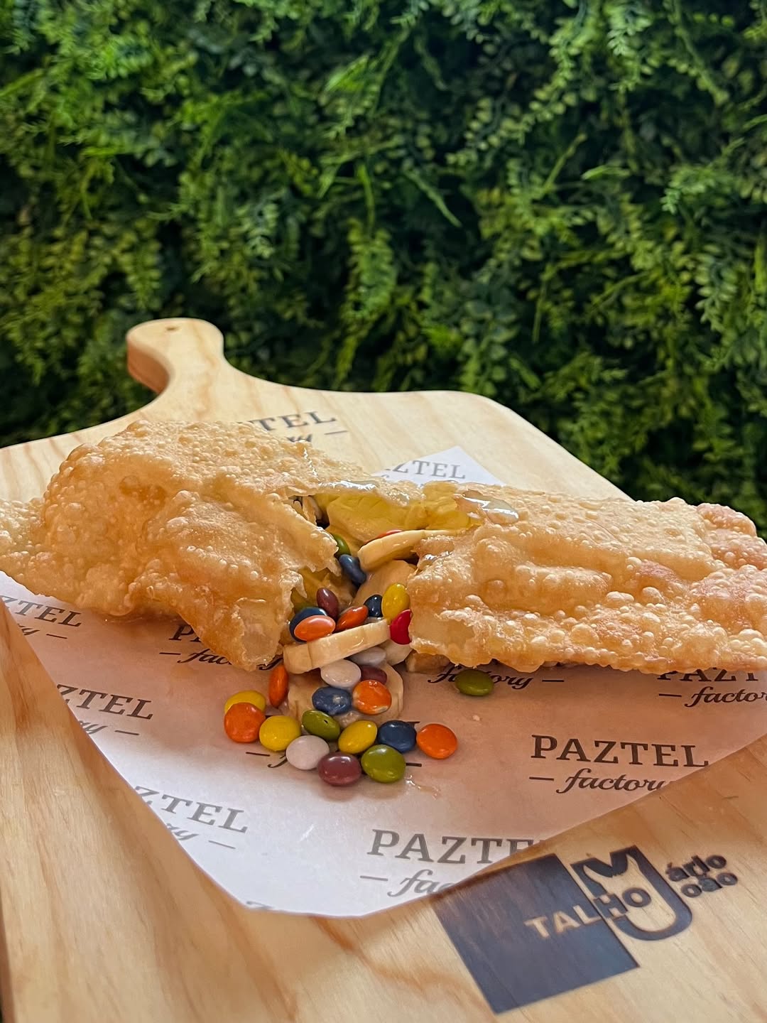 Pode criar o seu próprio pastel, tendo mais de 40 ingredientes à escolha, ou optar por algum já feito, como o de presunto, mozzarella, tomate, cebola e orégãos (5,60€), o de palmito, alho francês, milho, cebola e tomate cherry (5,60€), o de Nutella e morango (5€) e o de maçã e canela (4,40€).
