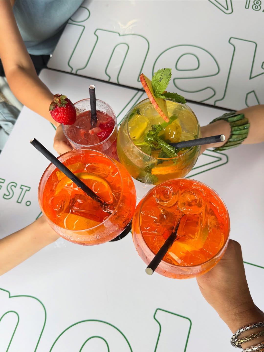 Para beber, pode optar pelas sangrias de frutos vermelhos ou de maracujá (30€), por uma vasta carta de vinhos, cervejas desde 3€, sidras desde 4€, água, refrigerantes, sumo de laranja natural ou limonada a 4€ e cocktails como Aperol Spritz (10€), Moscow Mule (11€), Caipirinha (9,50€), Espresso Martini (11€) e Pornstar Martini (12€).