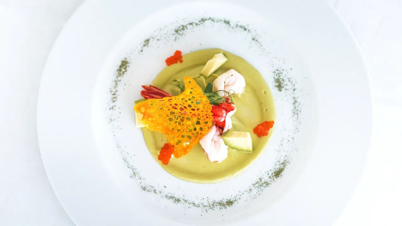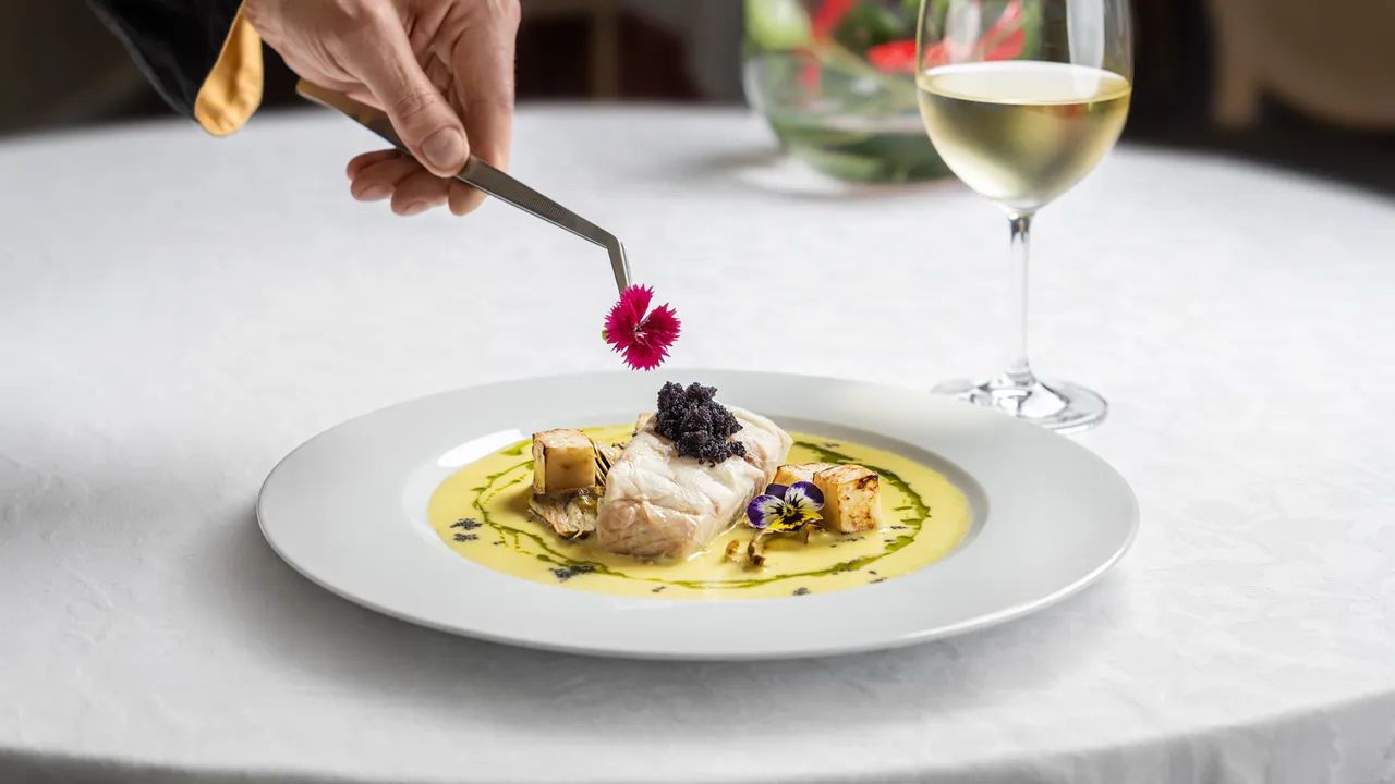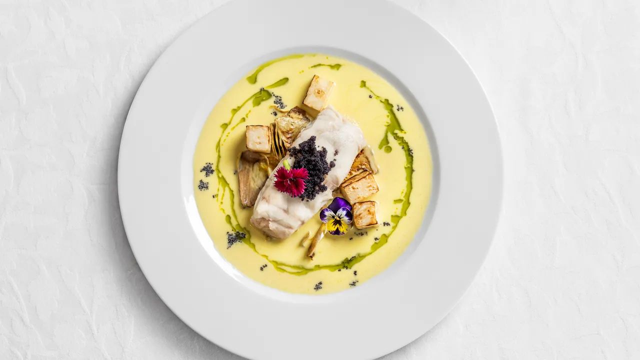 A experiência começa de forma simples com pequenos detalhes que aquecem o paladar, como o pão caseiro e manteiga de figos. O menu mistura influências mediterrânicas e contemporâneas, entre as opções: tártaro de novilho ou salmão nikkei, pastéis de cozido à portuguesa ou arancini de cogumelos, seguidos de pratos principais, como o risotto de polvo ou o arroz de forno com magret de pato.