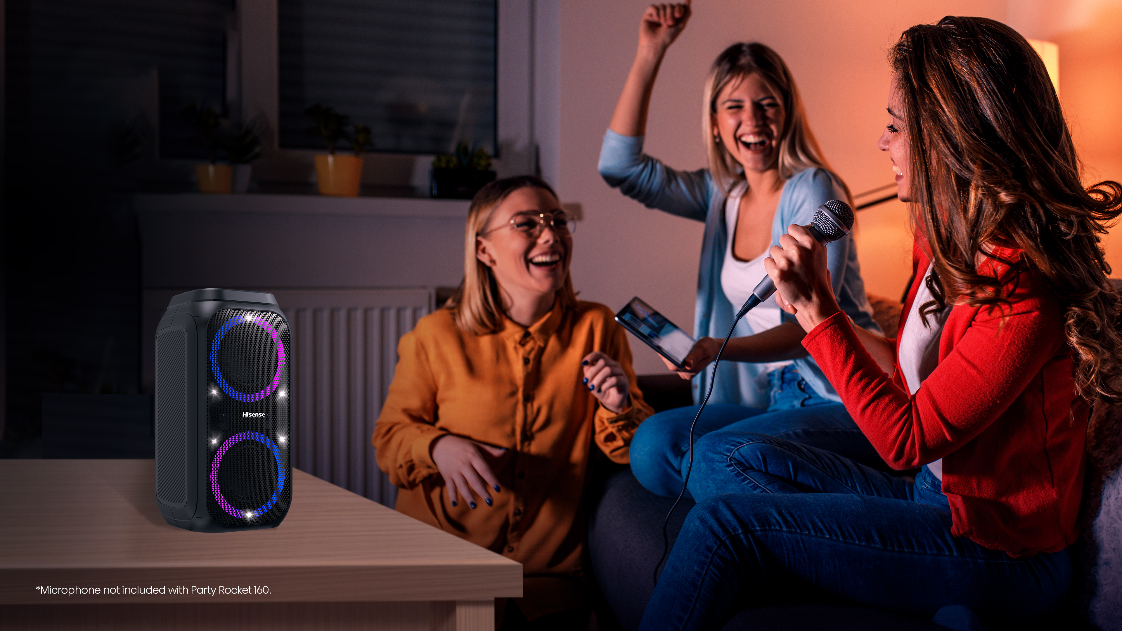A nova Party Rocket HP 160 oferece os sons mais vibrantes para uma experiência sonora incomparável. Com um subwoofer integrado, no qual se destacam os baixos potentes e os agudos nítidos, e uma potência total de 160W, a diversão vai ser amplificada. Graças a uma autonomia de bateria de 12 horas, pode divertir-se ao som da música durante metade do dia e, com cinco efeitos de luz, a Party Rocket também ilumina a sua festa e torna a experiência mais imersiva.