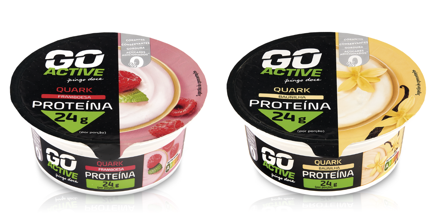 Ricos em proteína (1 unidade de 200g fornece 24g de proteína), os novos Quarks Proteicos GO Active, para além de muito cremosos, não têm corantes, conservantes nem açúcares adicionados e não têm gordura. Estão disponíveis nas lojas Pingo Doce por um PVP de 1,29€/un.