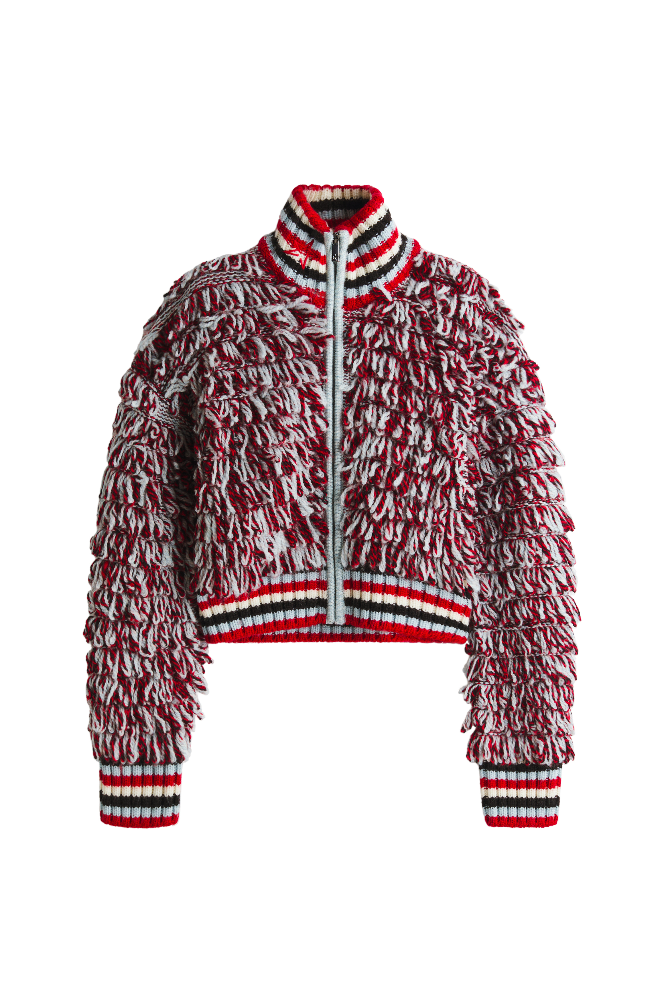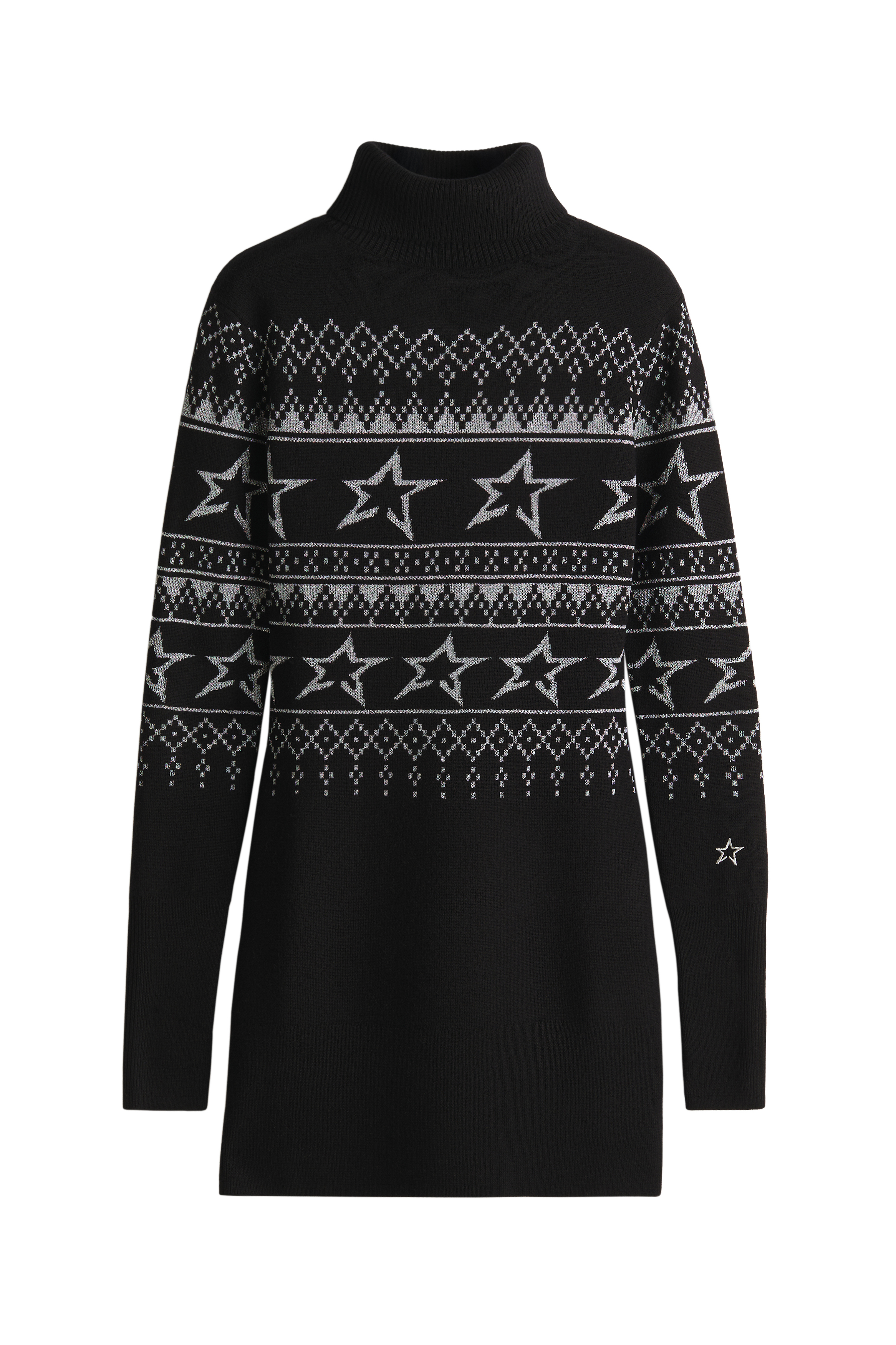 Assim, há casacos acolchoados com enchimento sintético e cortes oversized, outros padrões de estrelas e cintos jacquard, calças em pele com inspiração esqui, coordenados de malha bordô que parecem perfeitos para um descanso das pistas. É uma coleção pensada em camadas, onde o conforto e a sofisticação coexistem com naturalidade.