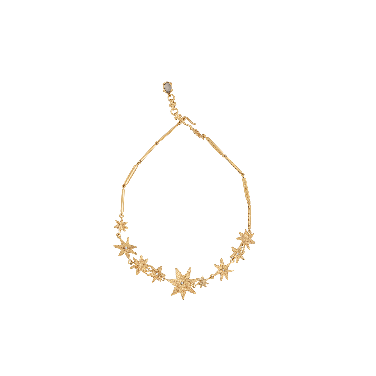 A coleção inclui brincos, anéis, colares e uma pulseira, todos marcados por texturas orgânicas, formas fluidas e brilhos metálicos que evocam fragmentos de luz. É uma proposta que não vive de tendências rápidas, mas da ideia de capturar a intensidade de uma explosão cósmica e traduzi-la em peças de uso diário.