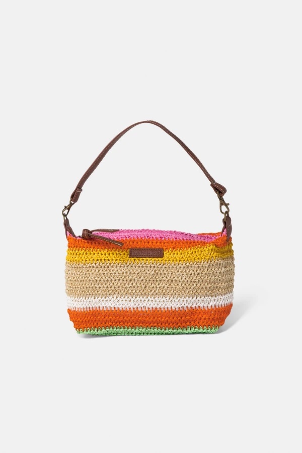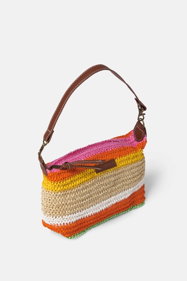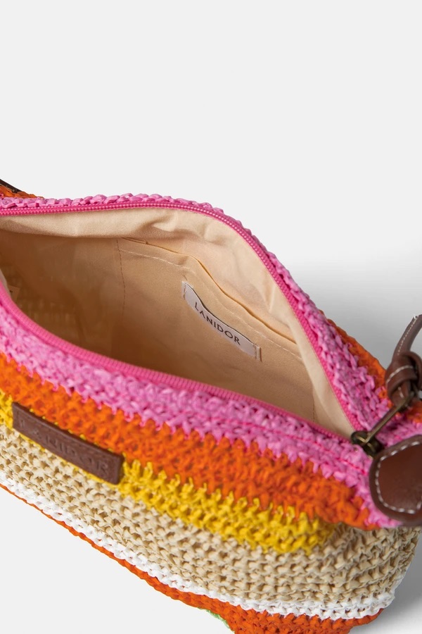 É aqui que entra a Lanidor, com uma proposta irresistível para quem quer entrar no espírito da tendência sem hipotecar o ordenado. A marca portuguesa lançou uma mala em croché, também com padrão às riscas multicoloridas, alça castanha e uma vibe igualmente arrojada. As cores diferem ligeiramente, já que os tons passam pelo rosa choque, amarelo, laranja, cru, branco e um toque de verde.