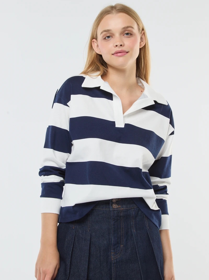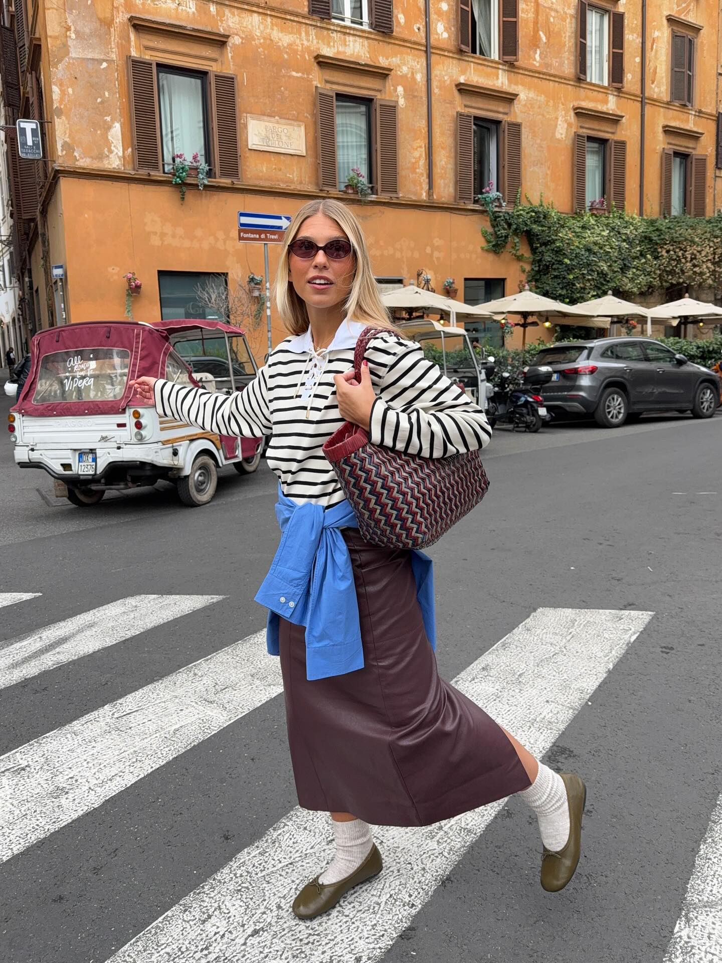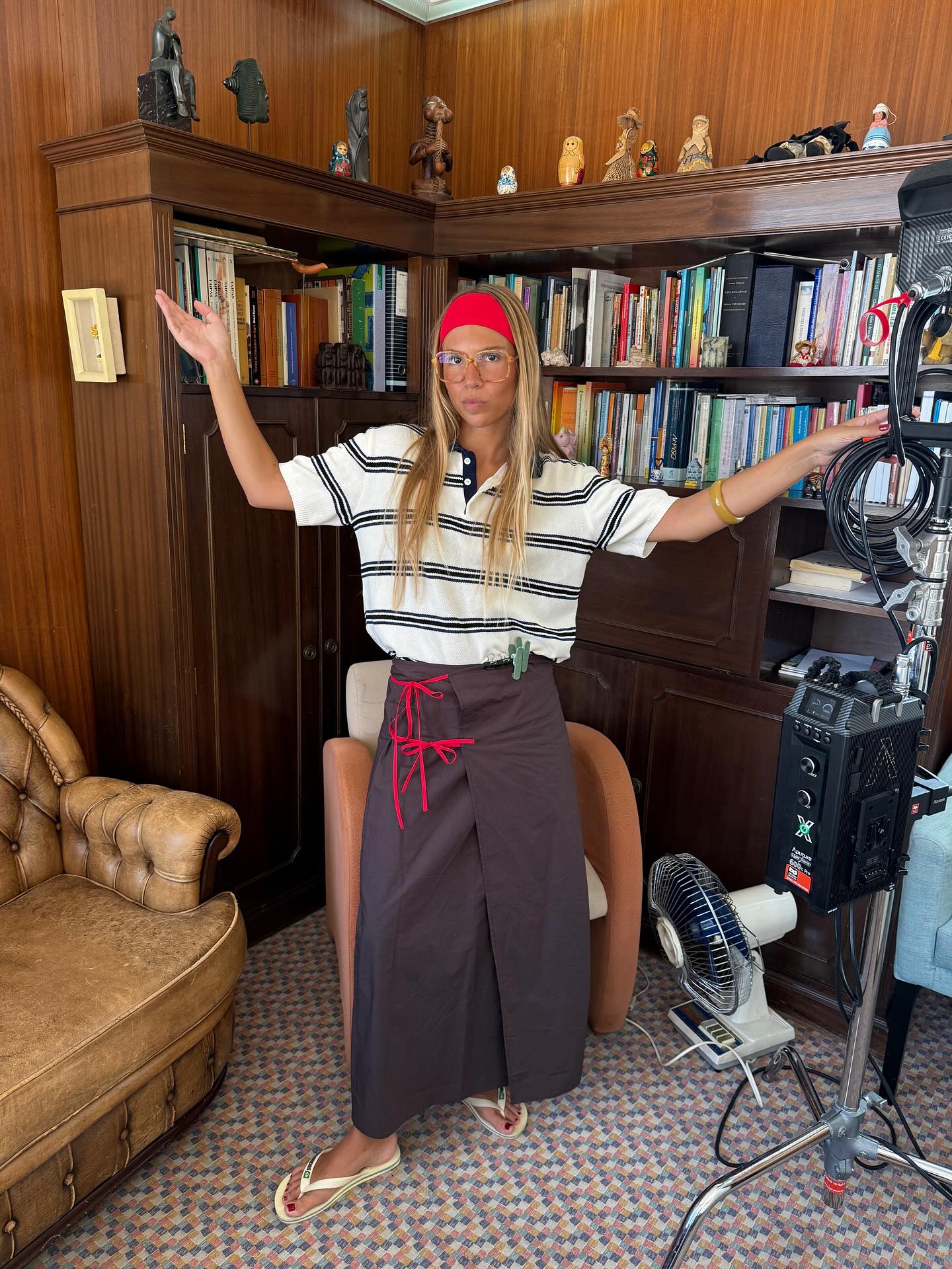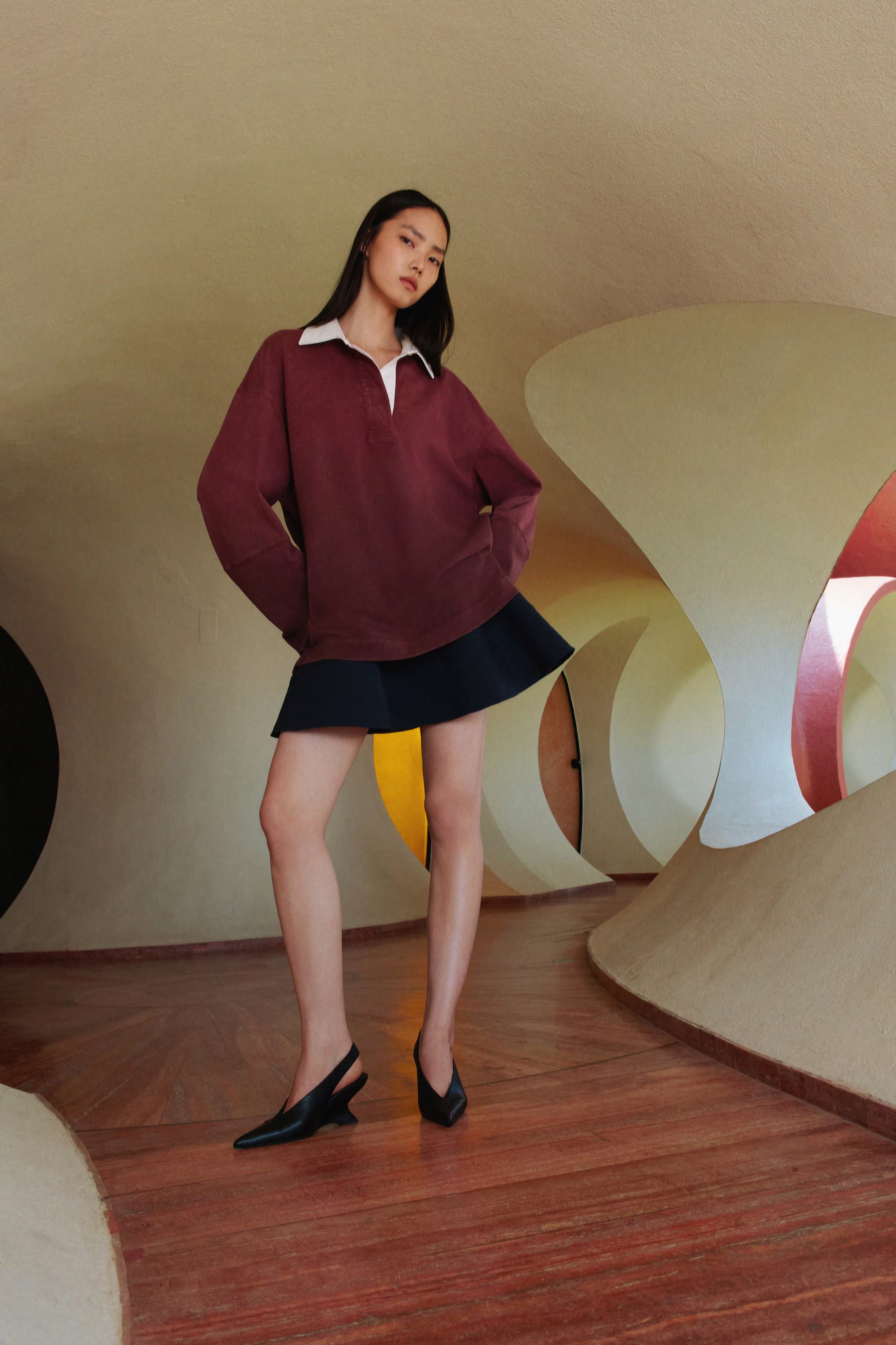 Marcas como Sandy Liang, Miu Miu e Ralph Lauren estão a reinterpretar o clássico à luz da irreverência contemporânea. Há duplas de polos com colarinhos sobrepostos (olá novamente, double collar), riscas contrastantes, combinações inesperadas com saias lápis ou calças cargo, pérolas e ténis retro. A palavra de ordem é subversão.