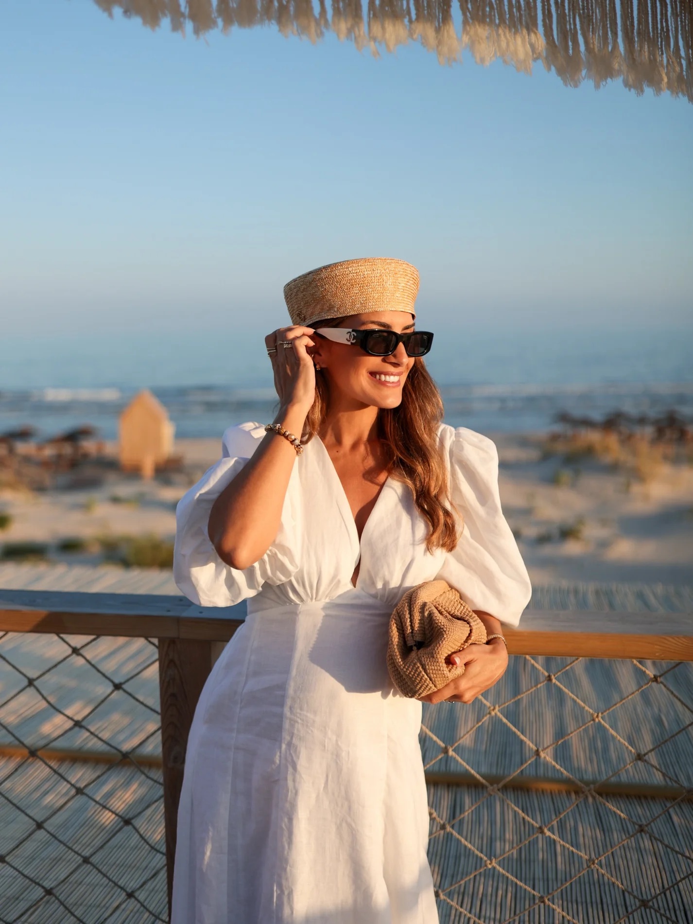 Nas imagens partilhadas nas redes sociais, a apresentadora aparece com um vestido curto, branco, fluido e elegante, que complementou com as icónicas sandálias Oran, da Hermès. Contudo, o protagonista do look foi, sem dúvida, aquilo que tinha na cabeça: o chapéu Paros, da marca portuguesa Le Trap, que surgiu de uma colaboração com a influenciadora Joana Vaz.