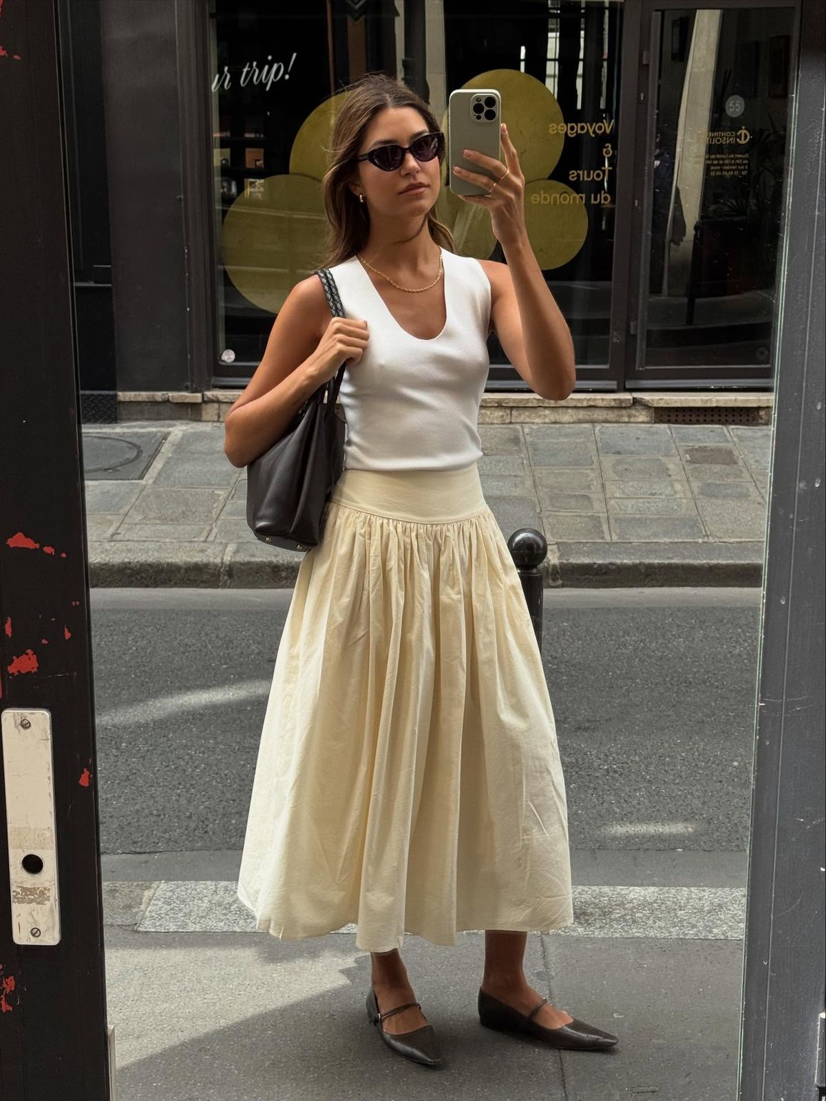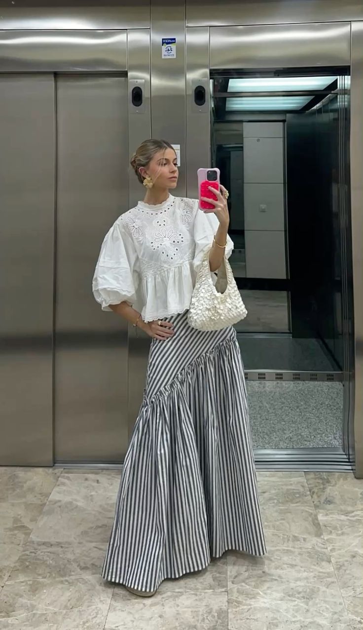 Para ser ter sucesso a usá-las, a chave está no equilíbrio de proporções. Saias fluídas pedem peças superiores mais estruturadas, ao passo que modelos de cintura baixa ou de corte direito funcionam melhor com tops simples e sapatos que alonguem a silhueta. O calçado também faz toda a diferença, uma vez que sandálias rasas, mules ou ténis dão um ar mais descontraído, enquanto um sapato mais limpo transforma a mesma saia num look mais composto.