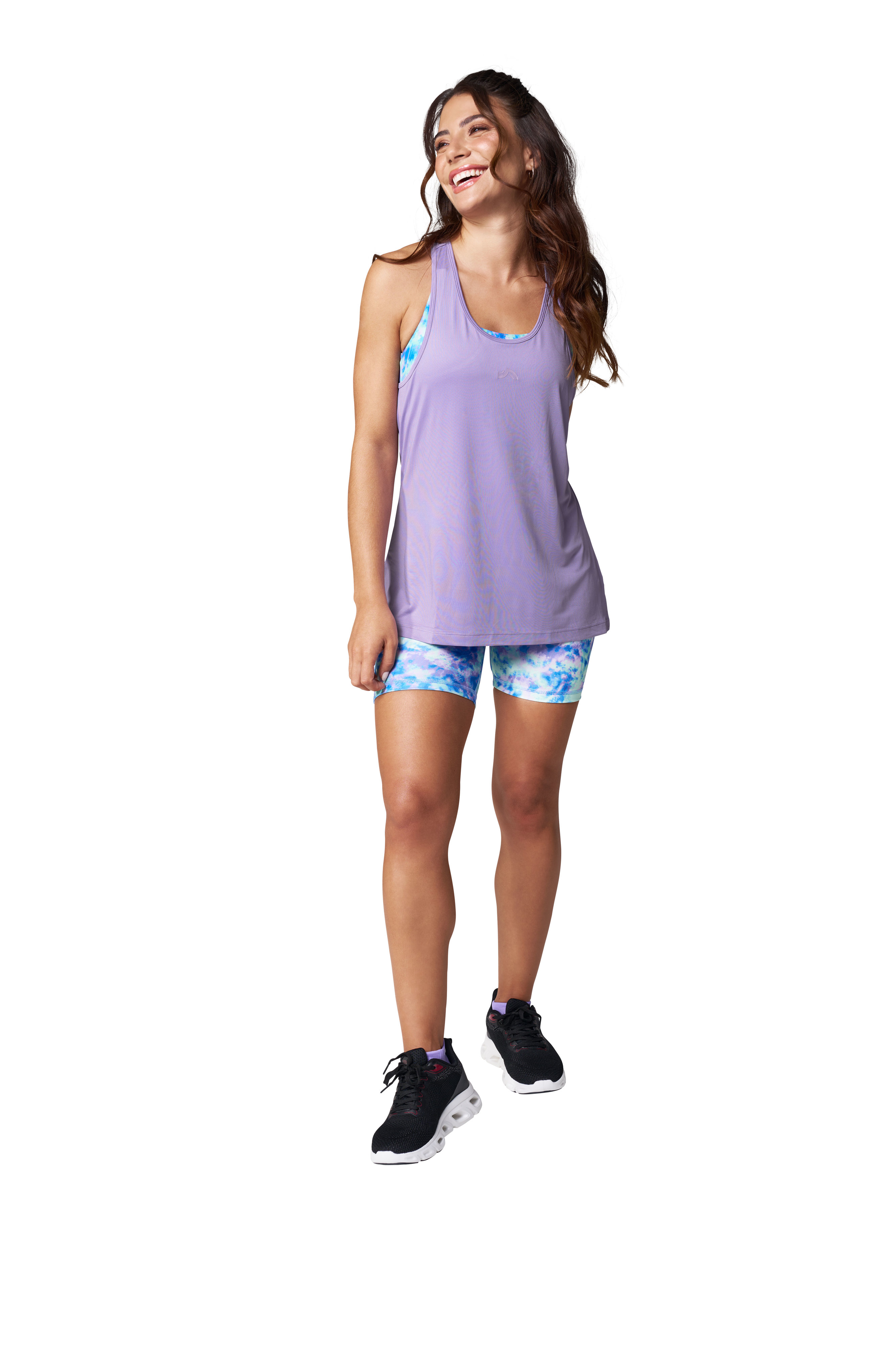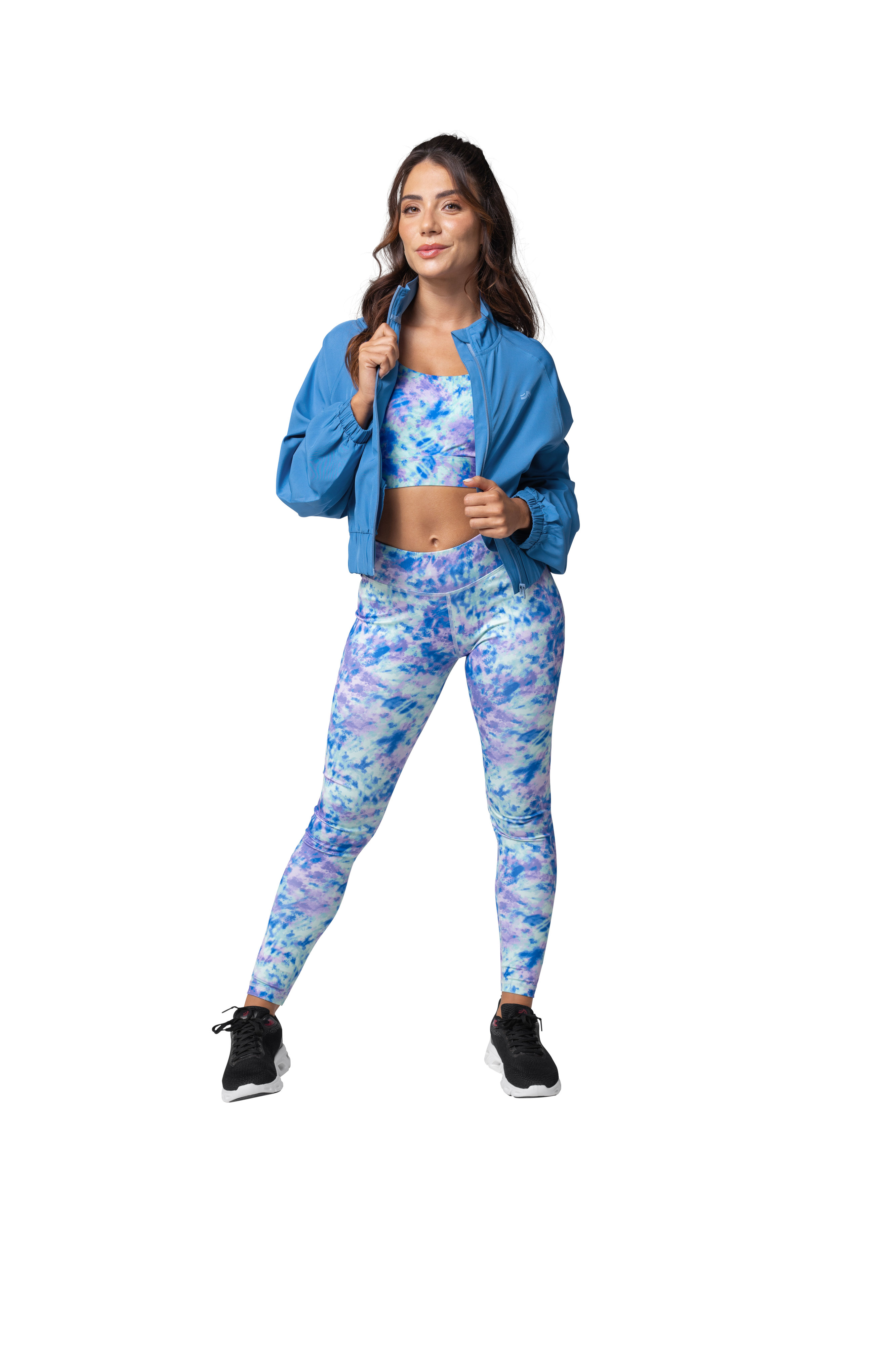 De acordo com a marca, a artista rumou até à Alemanha para mergulhar no processo criativo e escolher pessoalmente os padrões e cores. O resultado é uma linha com a sua assinatura: divertida, leve e cheia de energia positiva. Há tons vibrantes, como roxo, azul e verde, que se misturam com peças versáteis, como o macacão preto e conjuntos básicos, que funcionam tanto para treinar como para usar no dia a dia.