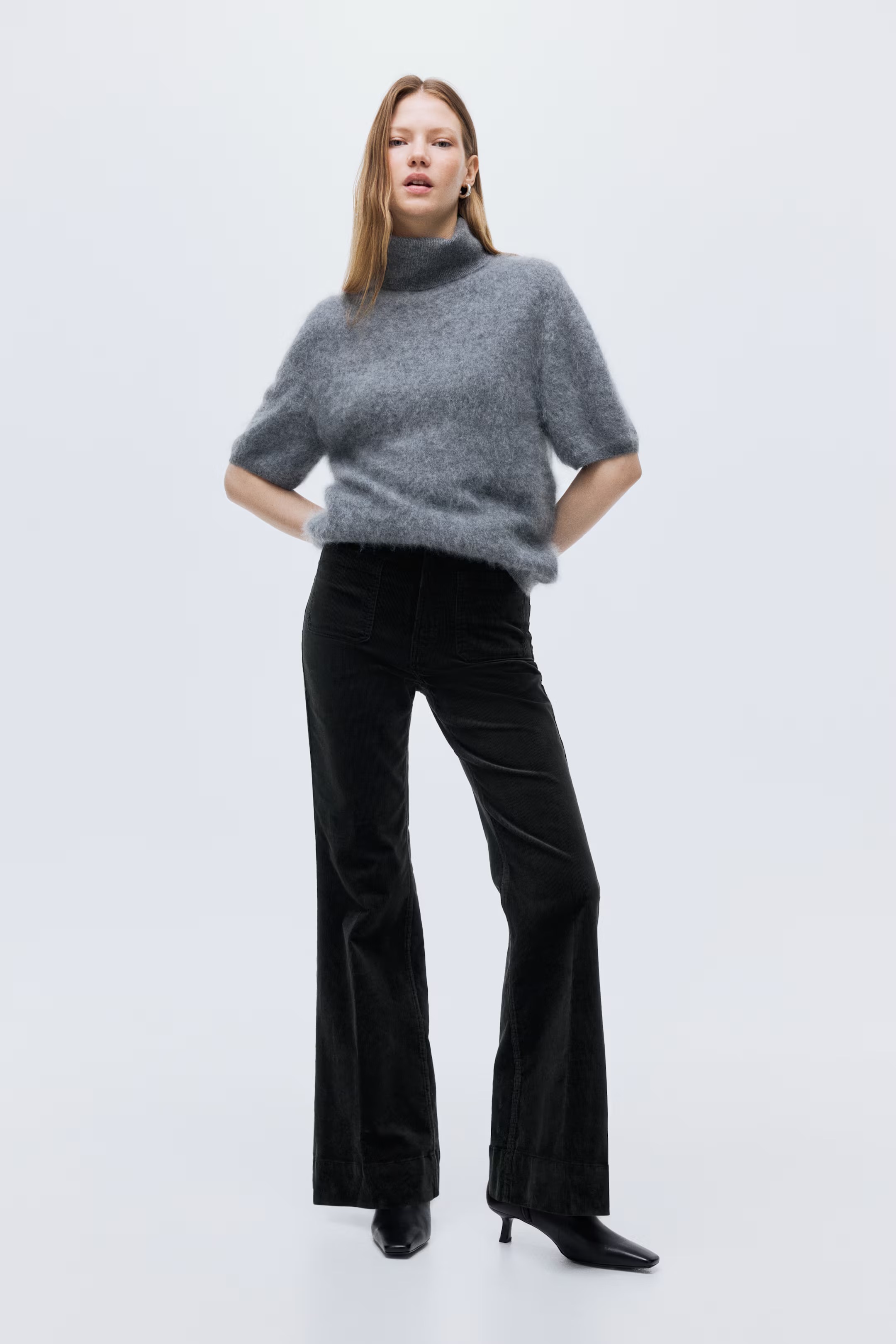 Lá está, o facto de terem a particularidade de se tornarem gradualmente mais largas a partir do joelho faz com que acabem por ajustar-se perfeitamente ao formato de botas de todos os estilos, seja de cano alto, médio ou baixo (e com ou sem salto, claro). Isto, por sua vez, é sinónimo de que a versatilidade das calças flare é outro dos seus grandes trunfos.