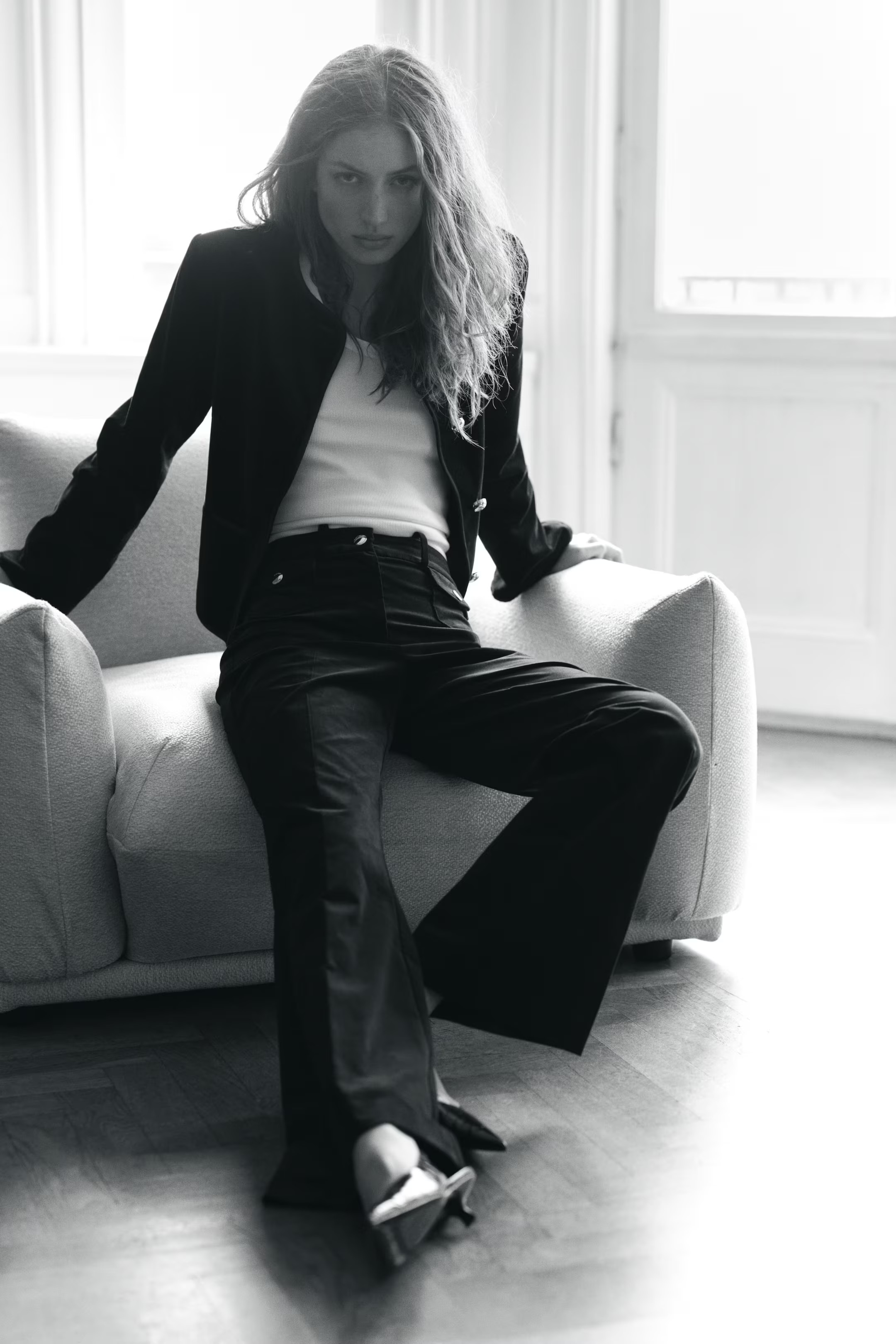 Carolina Patrocínio é assumidamente fã dos modelos de calças flare. Afinal, assentam nos sítios certos, sendo que são mais juntos nas ancas e na zona superior das pernas, alargando à medida que nos vamos aproximando dos pés, tendo a capacidade de alongar qualquer silhueta e de dar até a ilusão de ter mais uns centímetros.
