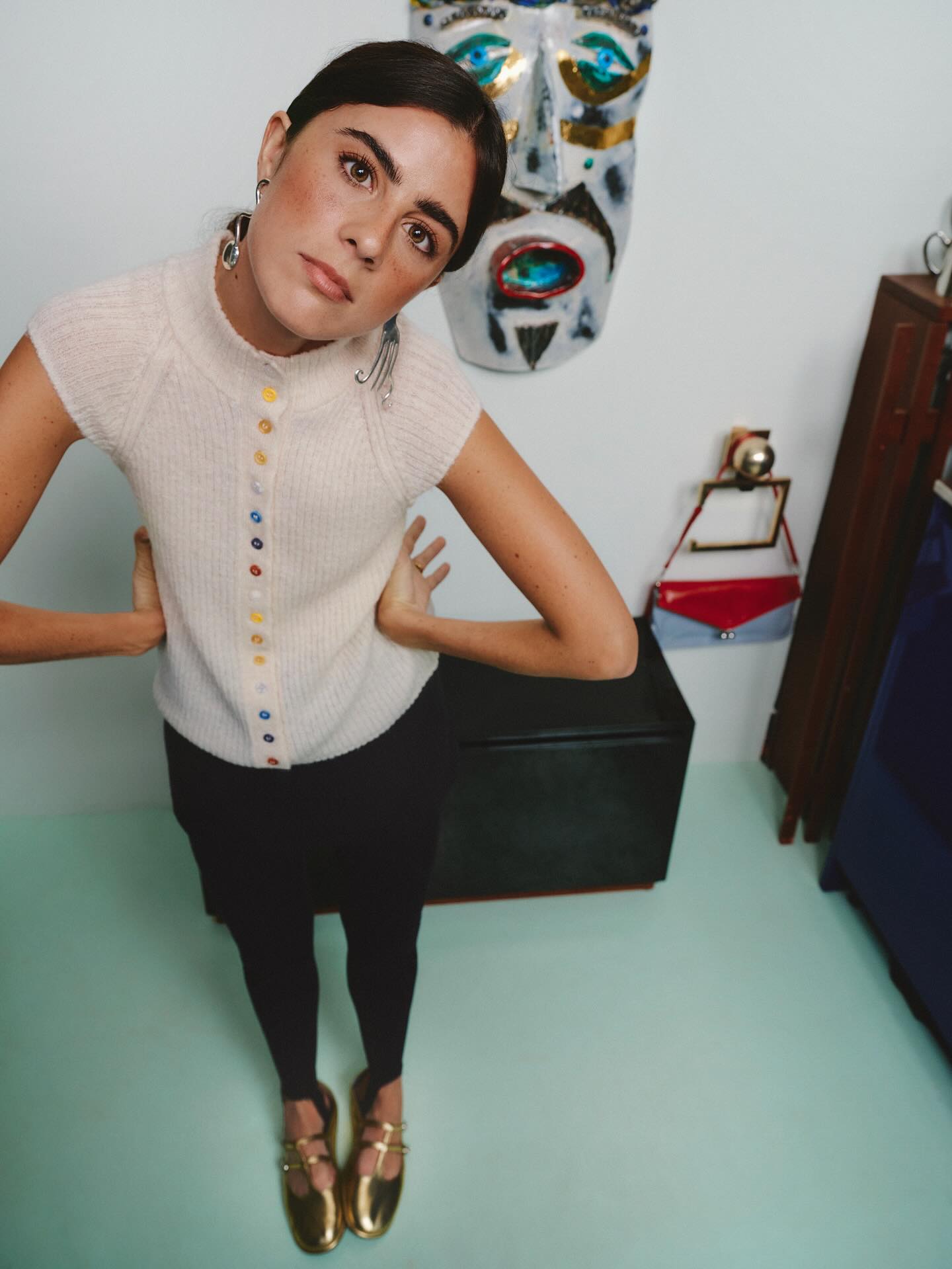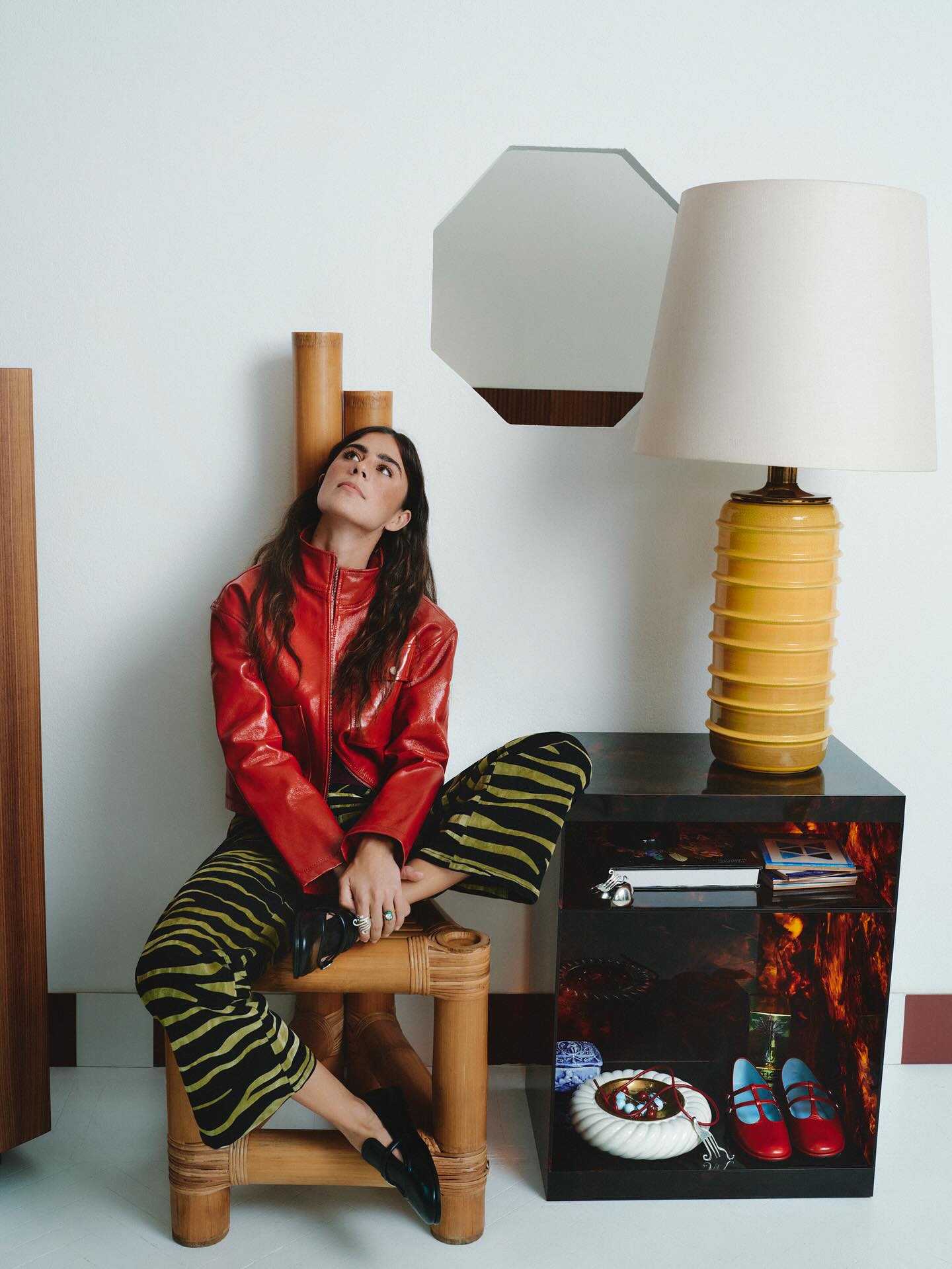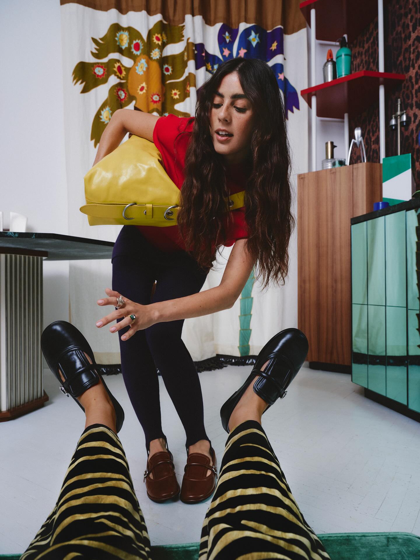 Os padrões, por isso, repetem-se com rigor quase matemático, mas sempre com uma excentricidade controlada. Há ritmo, mas também muito capricho, numa harmonia que se quer imperfeita. A inspiração, diz-nos Vicky Montanari, vem de vários lados: da arquitetura ou de artistas, como a excêntrica Elsa Von Freytag, que recolhia artigos da rua para os transformar em objetos decorativos. “Ela era super excêntrica, aparecia nas fotografias de pernas levantadas, a fazer caretas”, recorda a influenciadora, reconhecendo-se nesse papel.