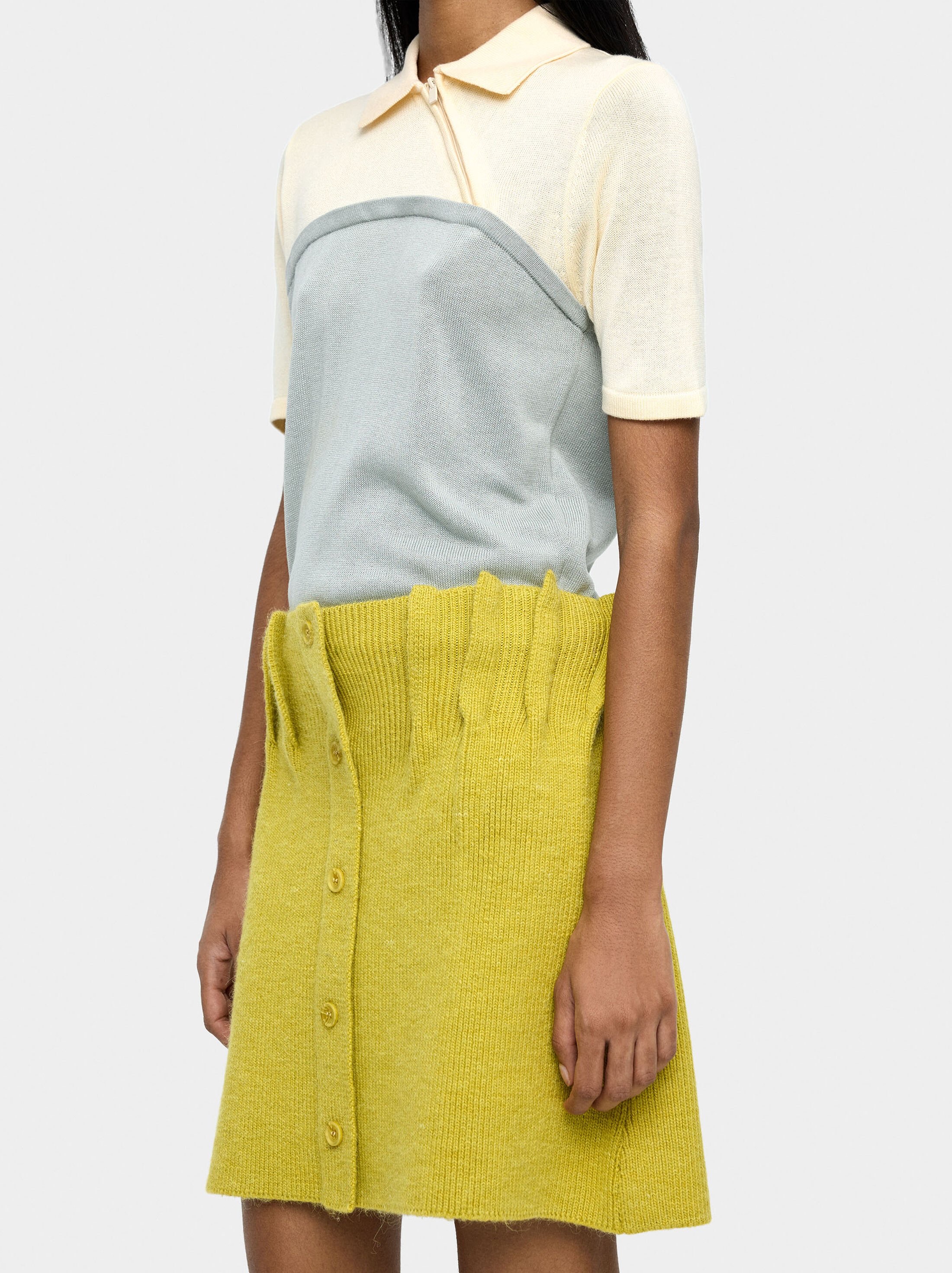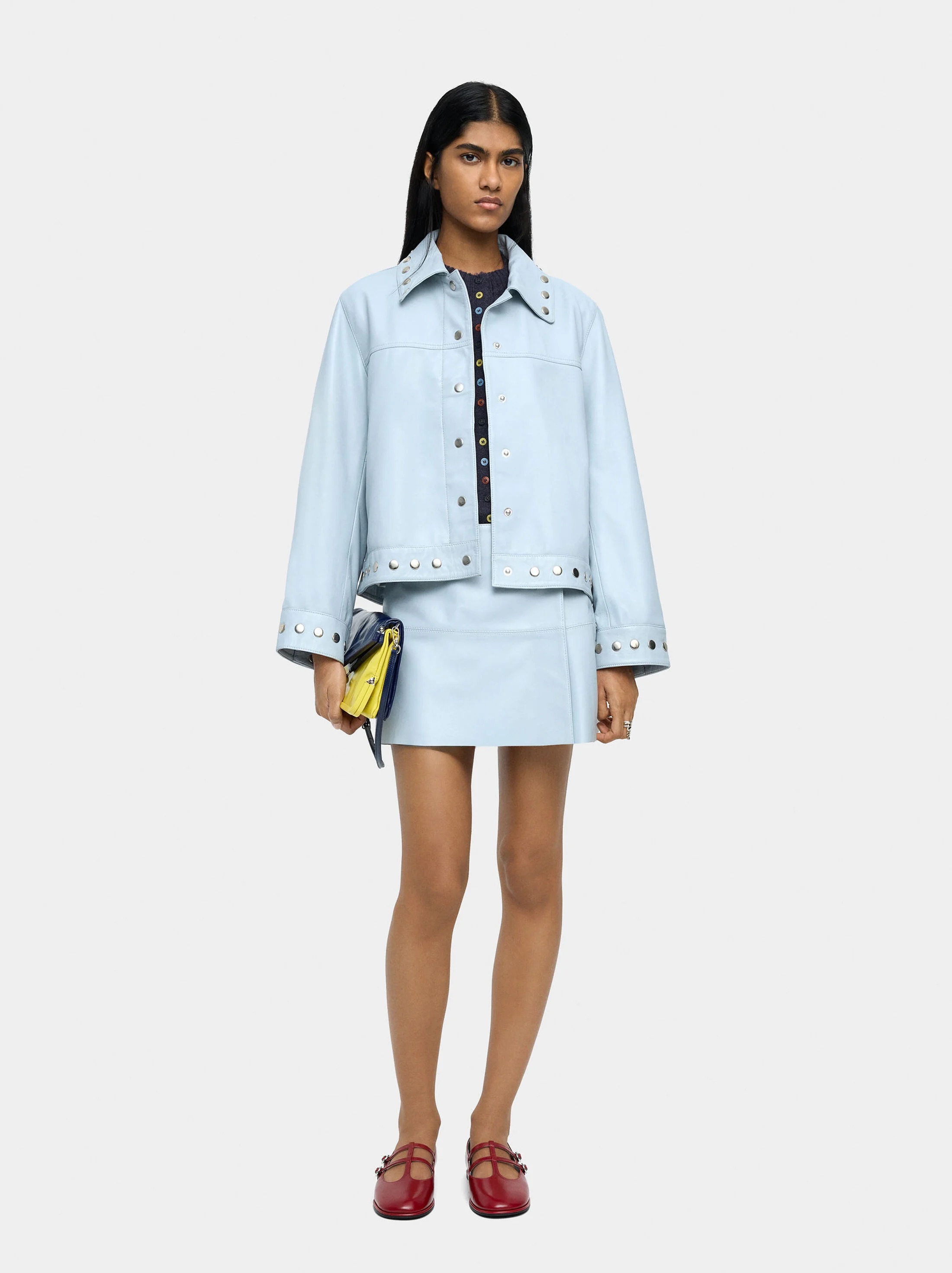 Ao todo, a coleção cápsula é composta por cerca de 40 peças, como conjuntos, polos, casacos, sapatos, malas e acessórios, que ganharam consistência nas suas mãos, marcadas pela geometria e pela cor. Afinal, que mais se poderia esperar de uma pessoa que, entre risos, se descreve como "geometric obsessed" (obcecada com geometria, em português) e cujo Instagram o confirma?