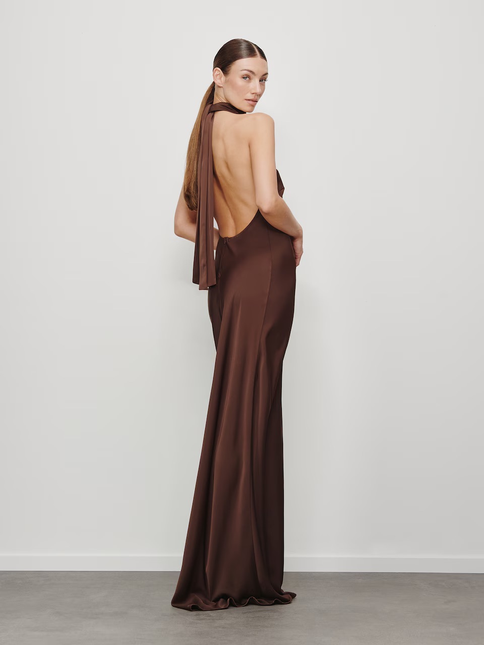 Para a ocasião, a apresentadora da TVI escolheu um modelo comprido azul-marinho e com lantejoulas da Kaoâ, que rapidamente se tornou um dos destaques da noite. Tem um corte ajustado valoriza a silhueta, a par de decote halter, que confere um toque elegante e moderno à peça. Mas é nas costas que o vestido revela o seu maior trunfo: um decote profundo, sustentado apenas por finas alças.