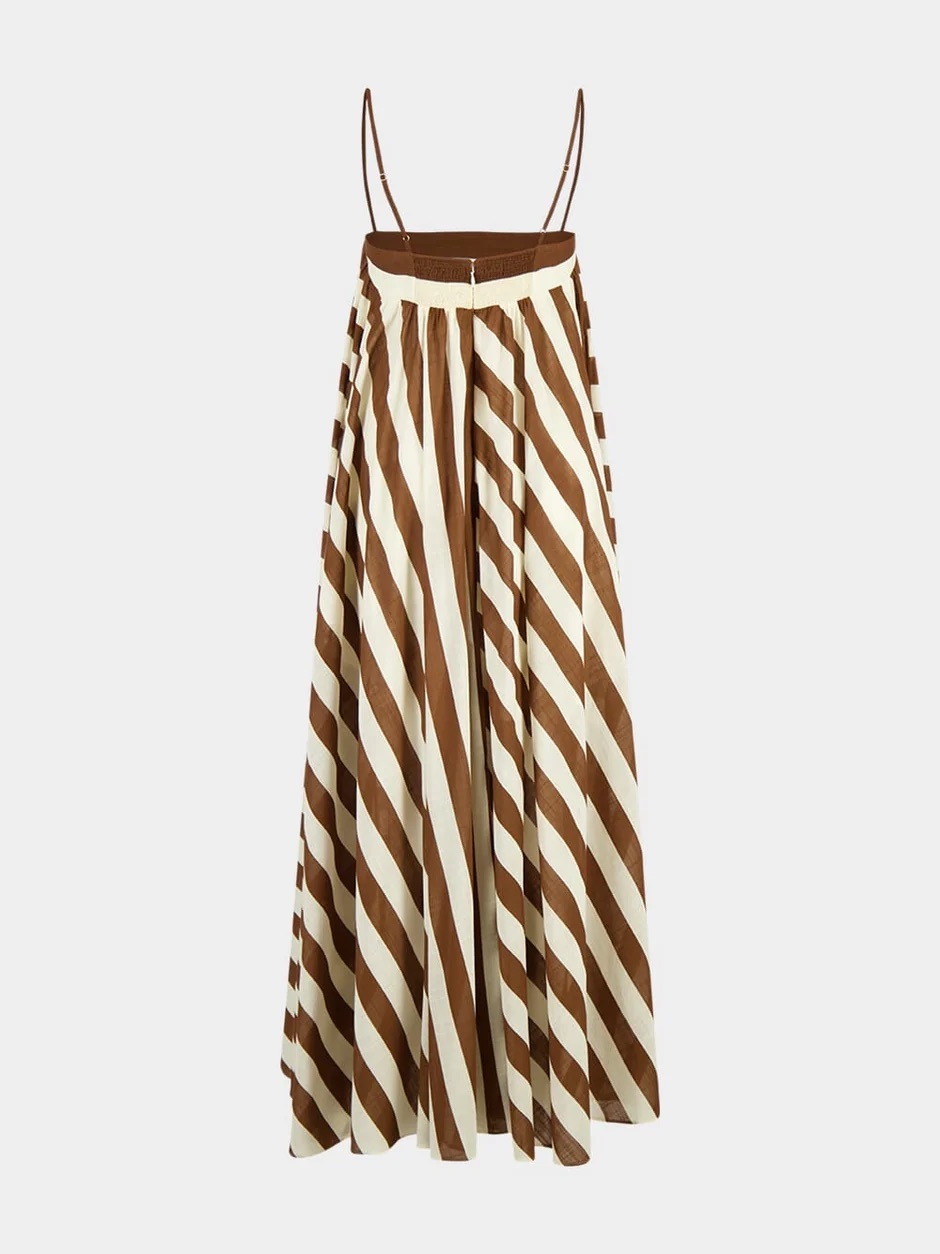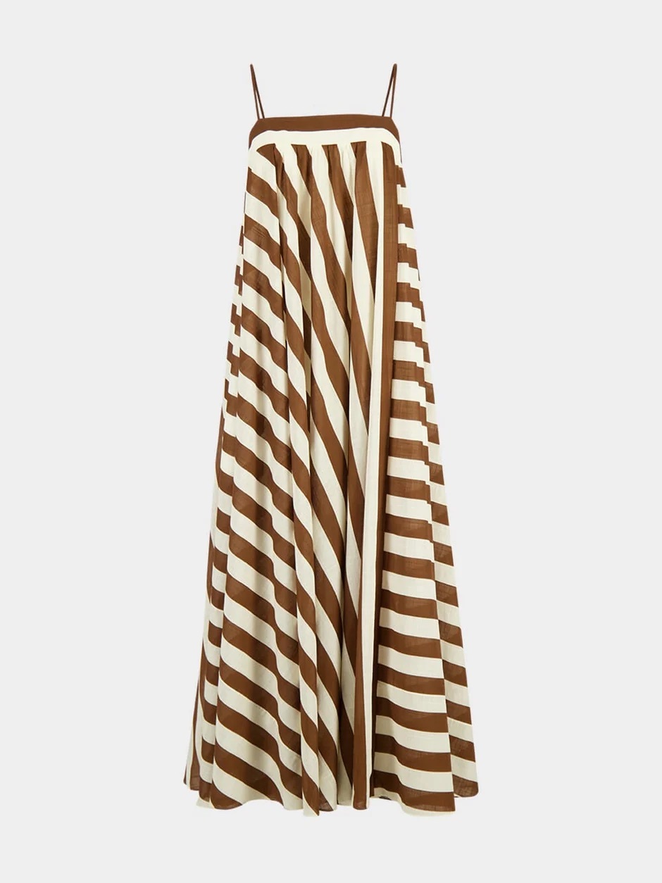 A peça escolhida é da Zimmermann e reflete na perfeição o equilíbrio entre glamour e leveza que tem marcado o guarda-roupa de férias da também diretora de Entretenimento e Ficção da TVI. Com uma silhueta fluida e comprimento maxi, o vestido destaca-se pela sua elegância natural e por uma paleta cromática quente e envolvente, que remete para tons terrosos e cremosos, ideais para cenários exóticos.