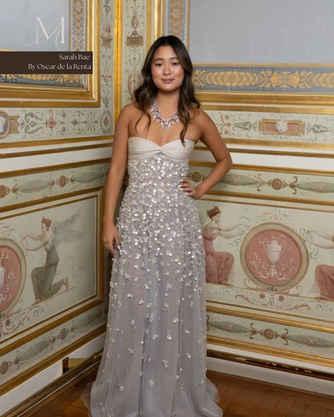 A passerelle improvisada continuou com Sarah Bae, em prata Oscar de la Renta, Alice Wang num Vera Wang magenta, e Josephine Haas, num dramático Guo Pei branco e dourado. Isabelle von Perfall optou por um clássico vestido preto de Monique Lhuillier totalmente coberto de lantejoulas, enquanto Reagan Sacks assumiu a fantasia num Schiaparelli cor-de-rosa com tiara.