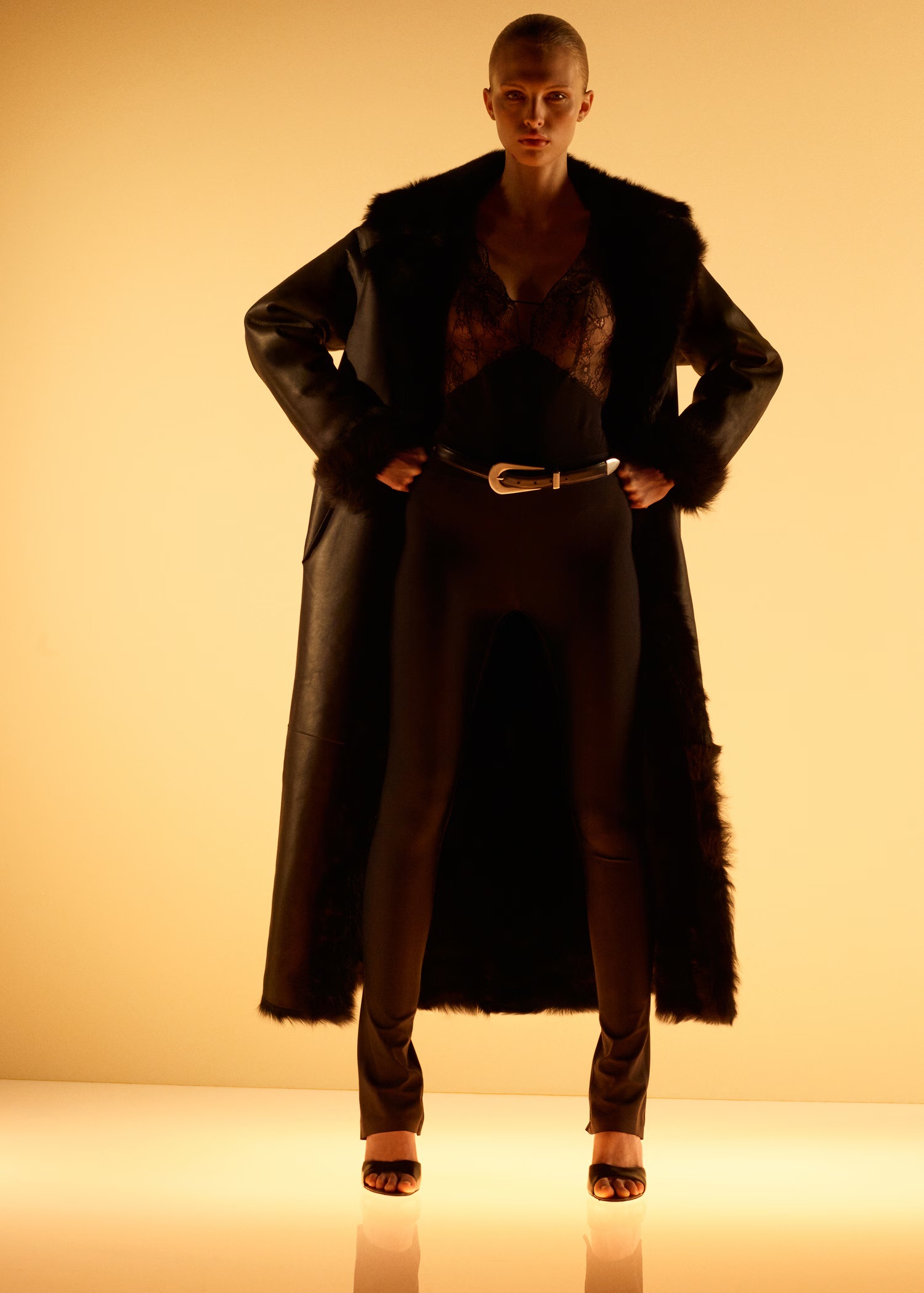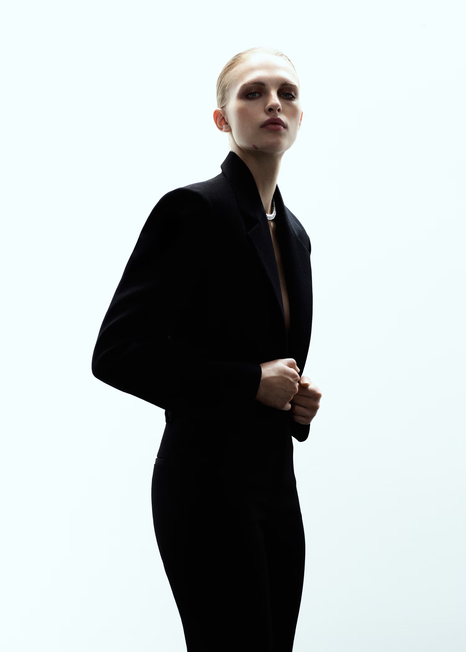 A coleção de festa que a acompanha é uma ode à dualidade feminina, sendo forte e suave, assim como moderna (mas intemporal). O preto é o rei absoluto, mas nunca previsível, sendo que surge em rendas, lantejoulas, ganga e pele, ora reluzente, ora opaco, sempre com atitude. Há casacos cropped e calças largas, alfaiataria oversized com um toque rebelde, mas a lista não se fica por aqui.