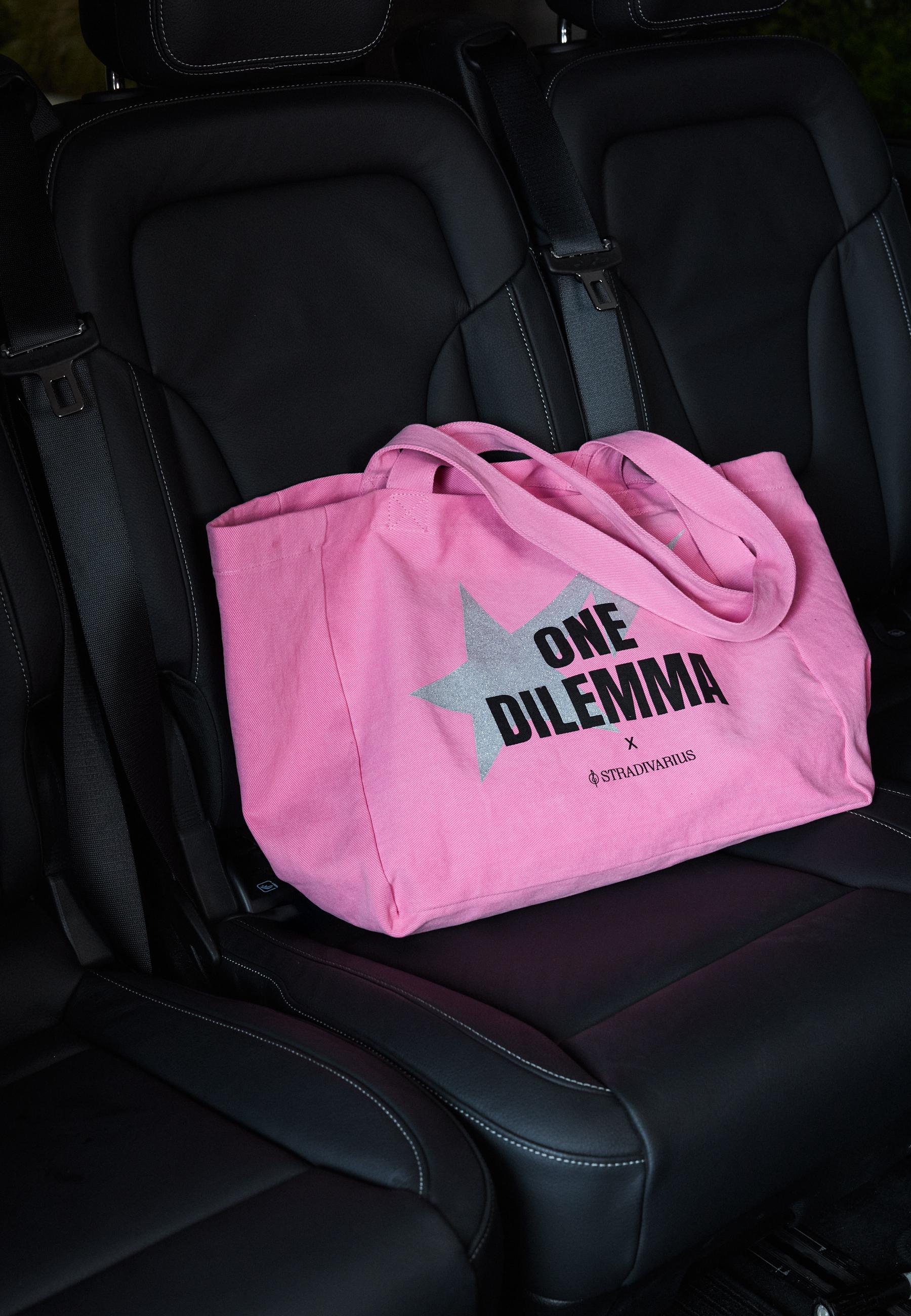 A coleção é composta por 10 peças, que se dividem em cinco tops, duas calças, duas saias e uma mala tote. O brilho fica patente em estrelas e tachas, combinados com uma paleta de cores onde dominam os tons prateados, o preto, o azul ganga e o fúcsia. Como assinatura visual da One Dilemma, todas as peças integram etiquetas fúcsia.