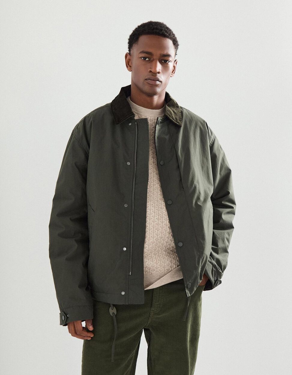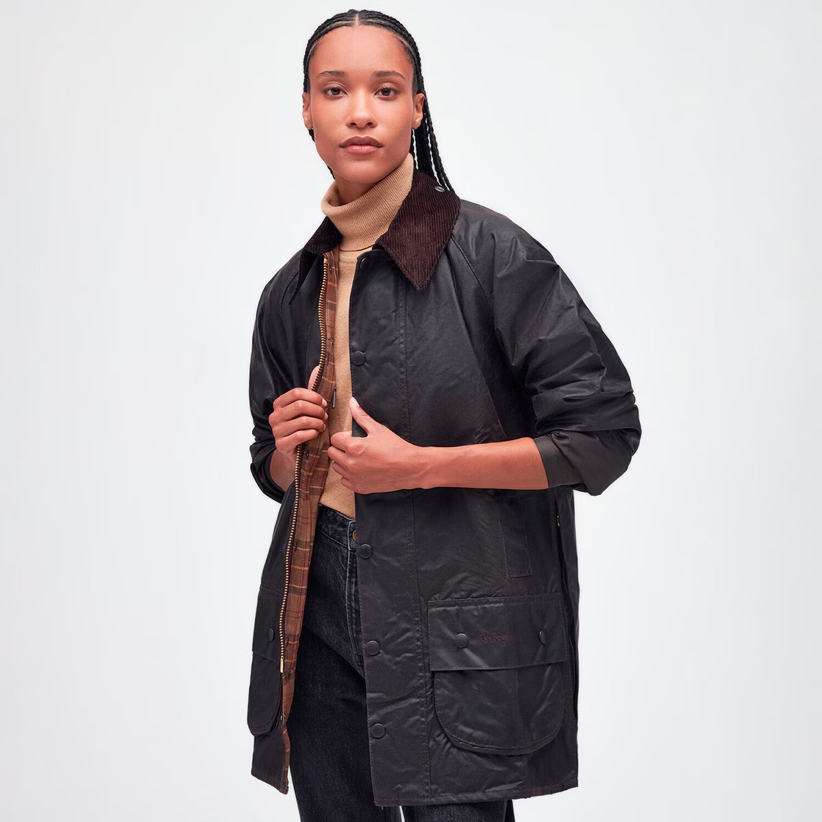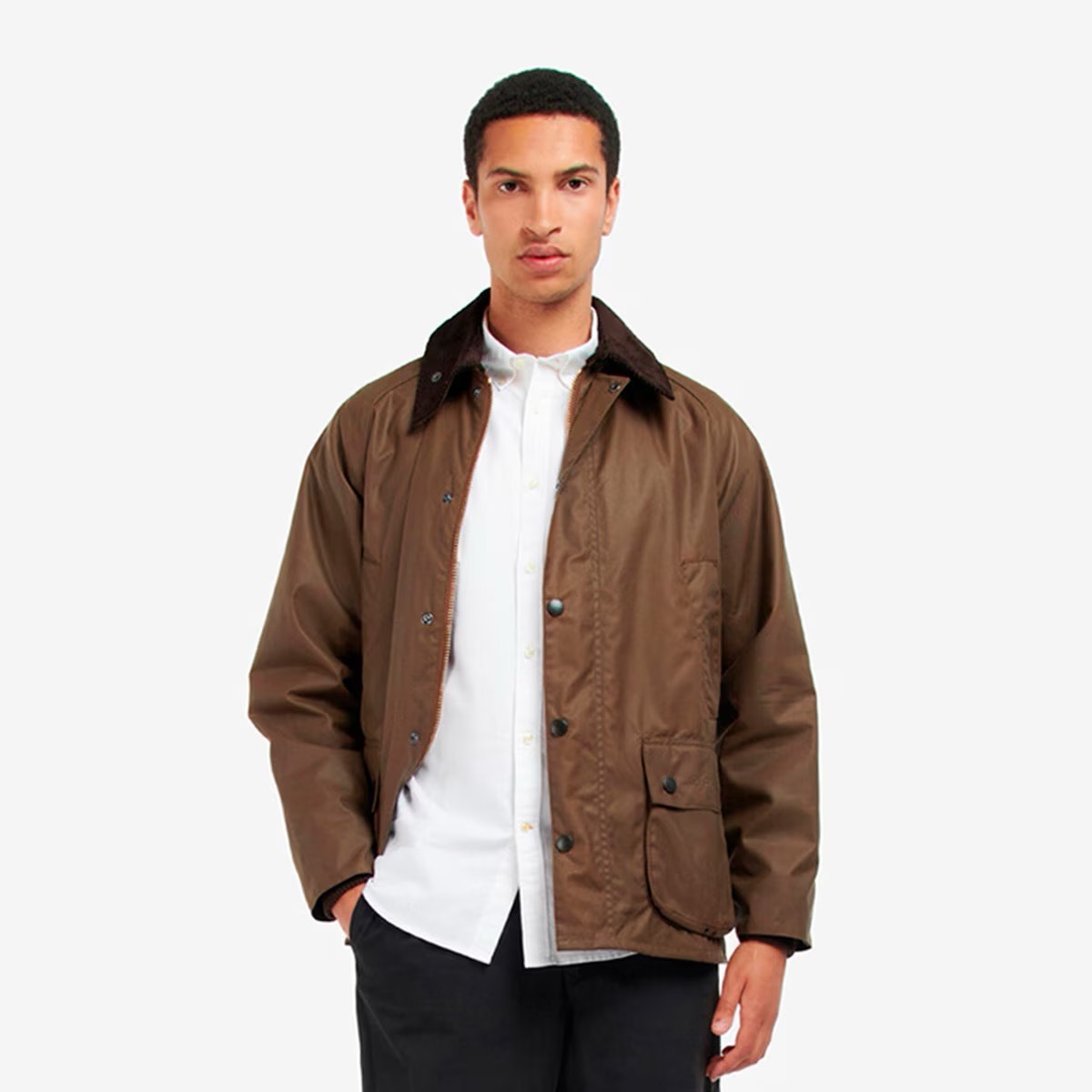 Falar de barn jackets sem mencionar a Barbour seria quase um sacrilégio. A marca britânica, fundada em 1894, construiu um legado sólido à volta dos seus casacos encerados, que começaram por vestir caçadores e agricultores, mas que hoje se passeiam, com todo o charme, pelas ruas das capitais mais cool do mundo. A aura campestre continua lá, claro, mas agora com um twist.