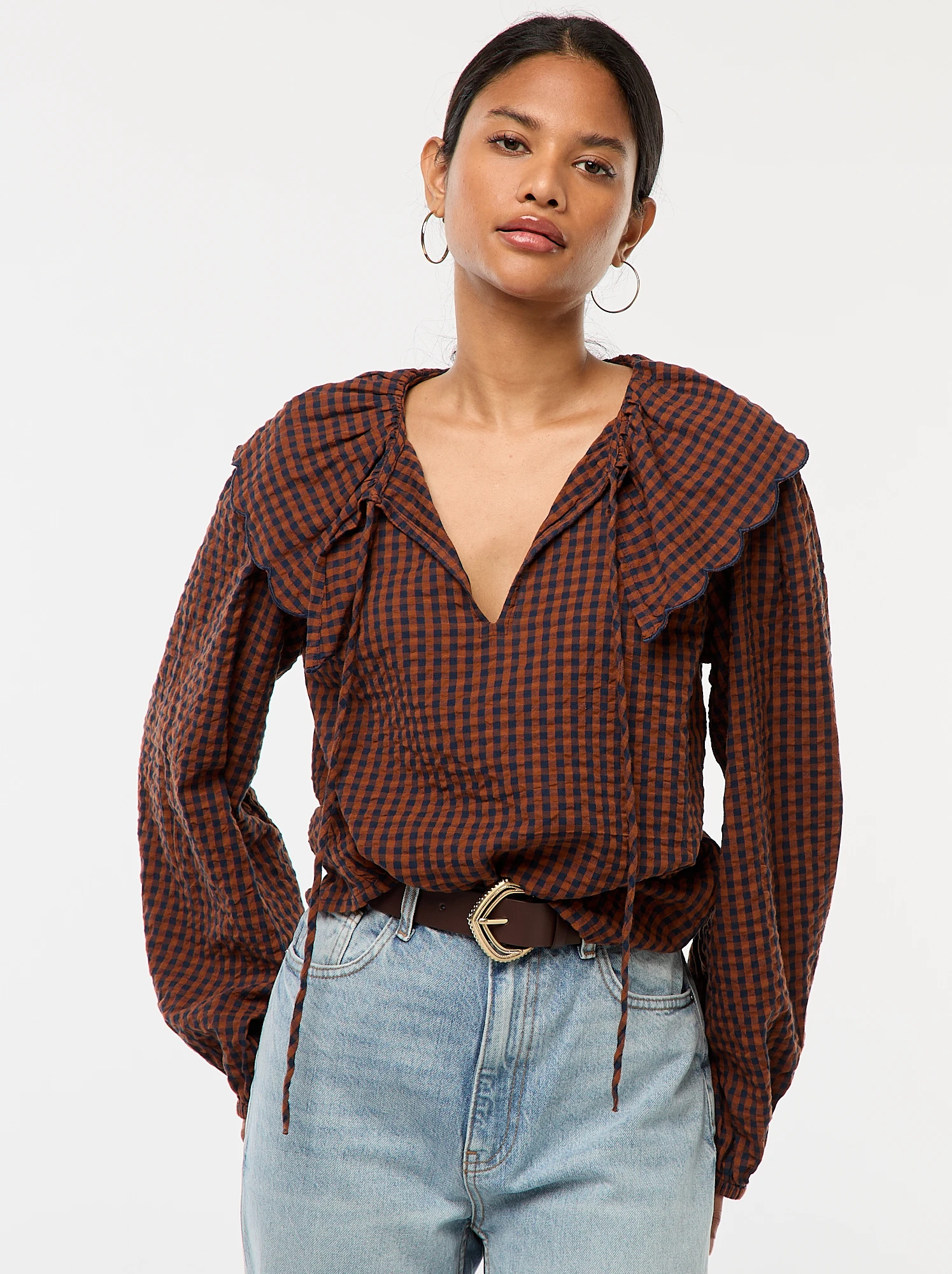 Entre os destaques estão padrões como xadrez vichy, padrões florais e ricas, pensados para dar um toque elegante e descontraído aos outfits diários. As mangas bufantes e as golas em tamanho XL dão personalidade às peças, transformando qualquer look mais simples numa combinação arranjadinha e sem grande esforço.