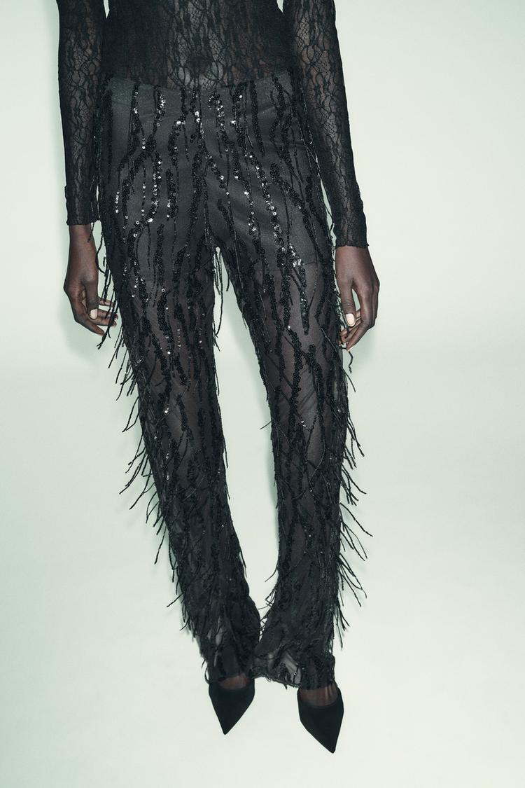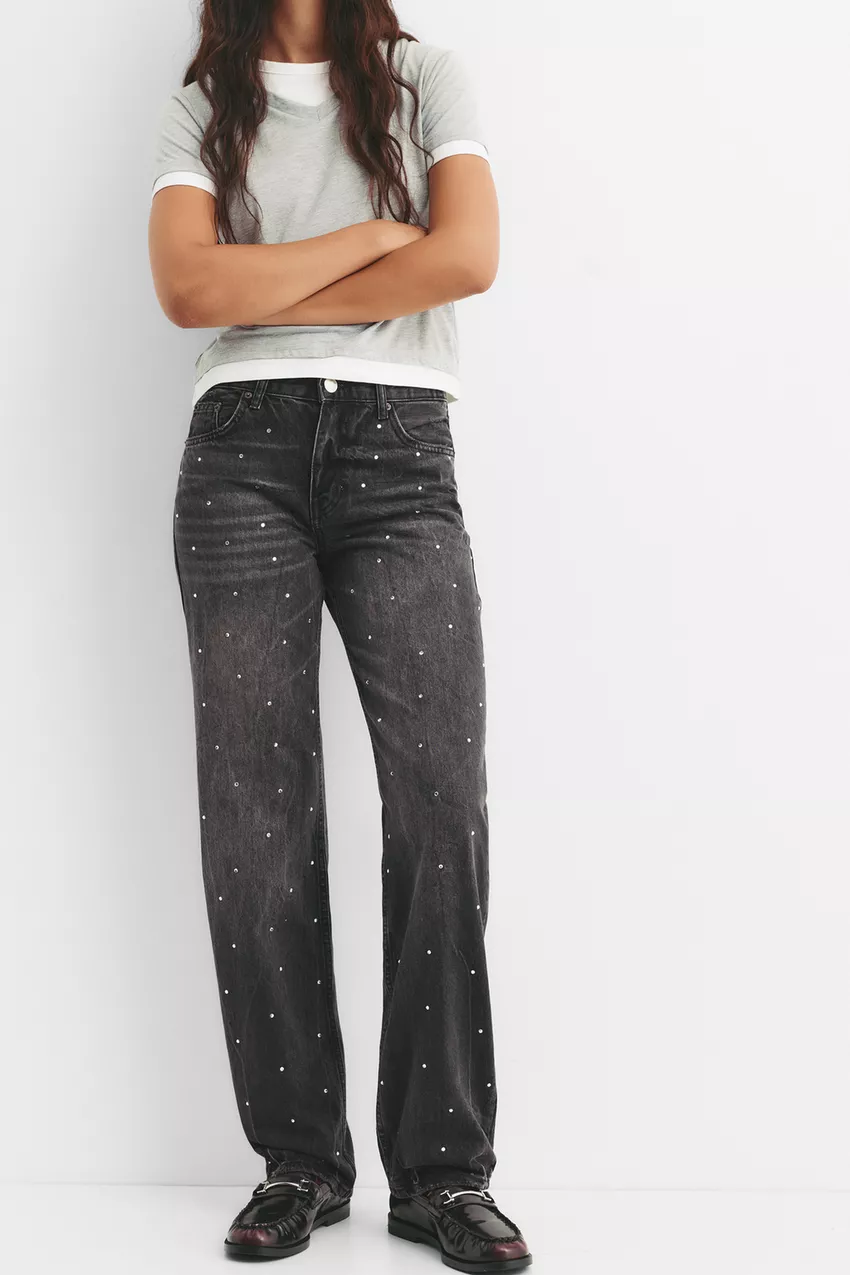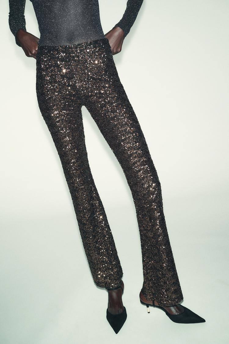 Nas lojas, as opções multiplicam-se e há propostas para todos os gostos: desde calças de ganga com detalhes brilhantes às leggings ou modelos totalmente revestidos de brilho.