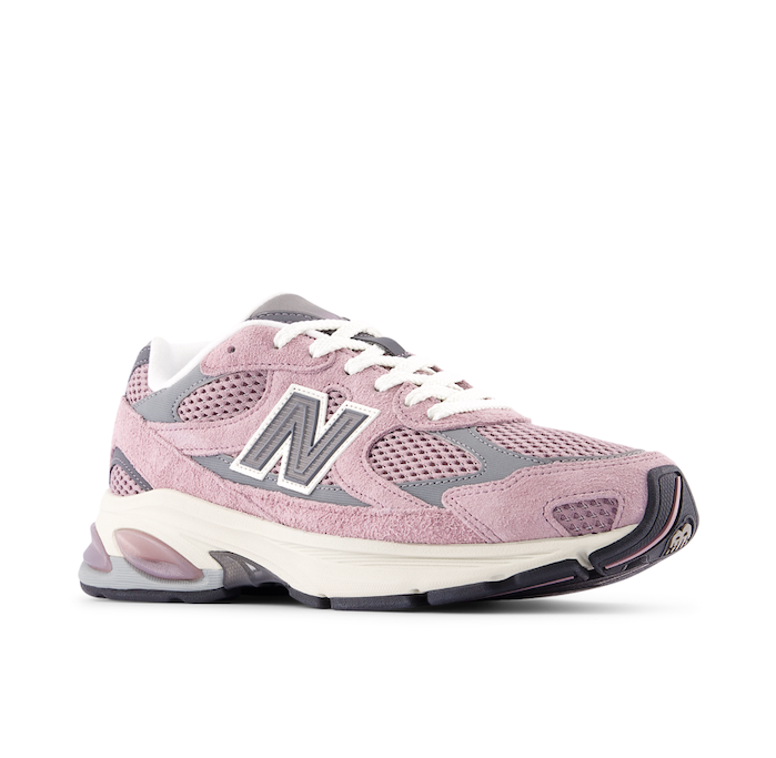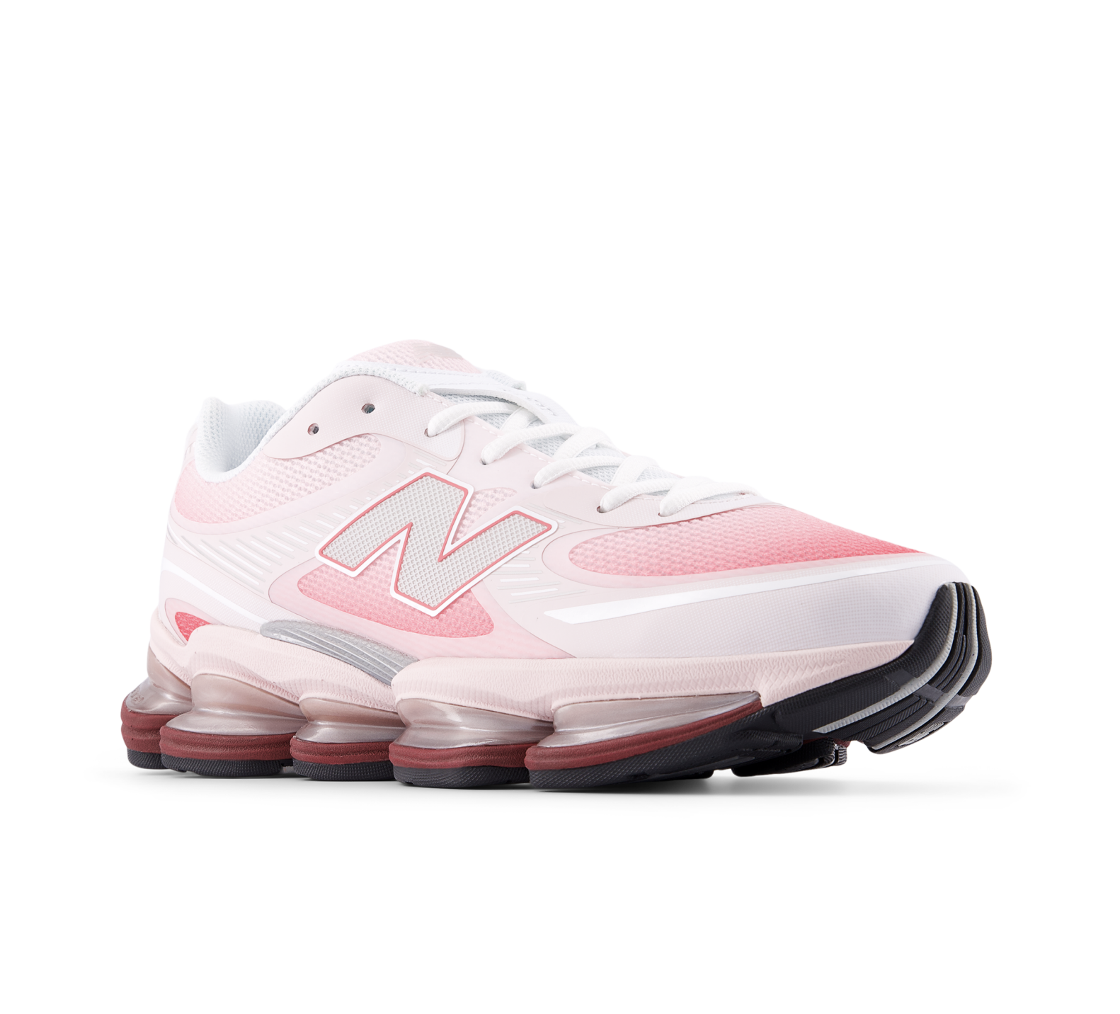 A sua sola robusta e o jogo de texturas revelam a atenção ao detalhe que define a New Balance. Cada linha parece em movimento, como se os ténis respirassem velocidade mesmo em repouso. Está disponível em duas combinações de cor: Rose Sugar com Monarch Burgundy e Pearl Gray com preto.
