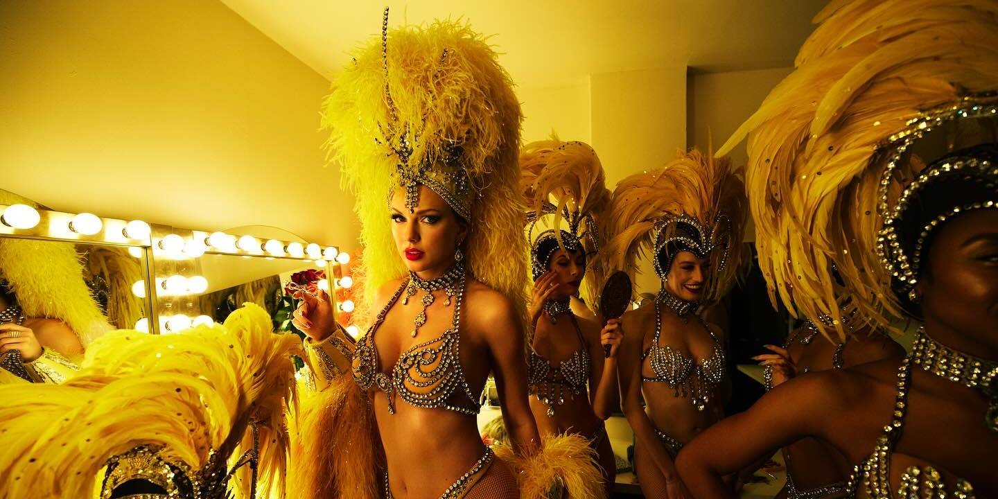 Afinal, no fundo, a estética showgirl é uma carta de amor ao exagero. Há corpetes estruturados, vestidos cravejados de lantejoulas, luvas compridas que acrescentam um toque de mistério, pelo, franjas e cores que não passam despercebidas, como vermelhos, dourados, prateados e, claro, as cores desta era (o laranja e o verde-água).