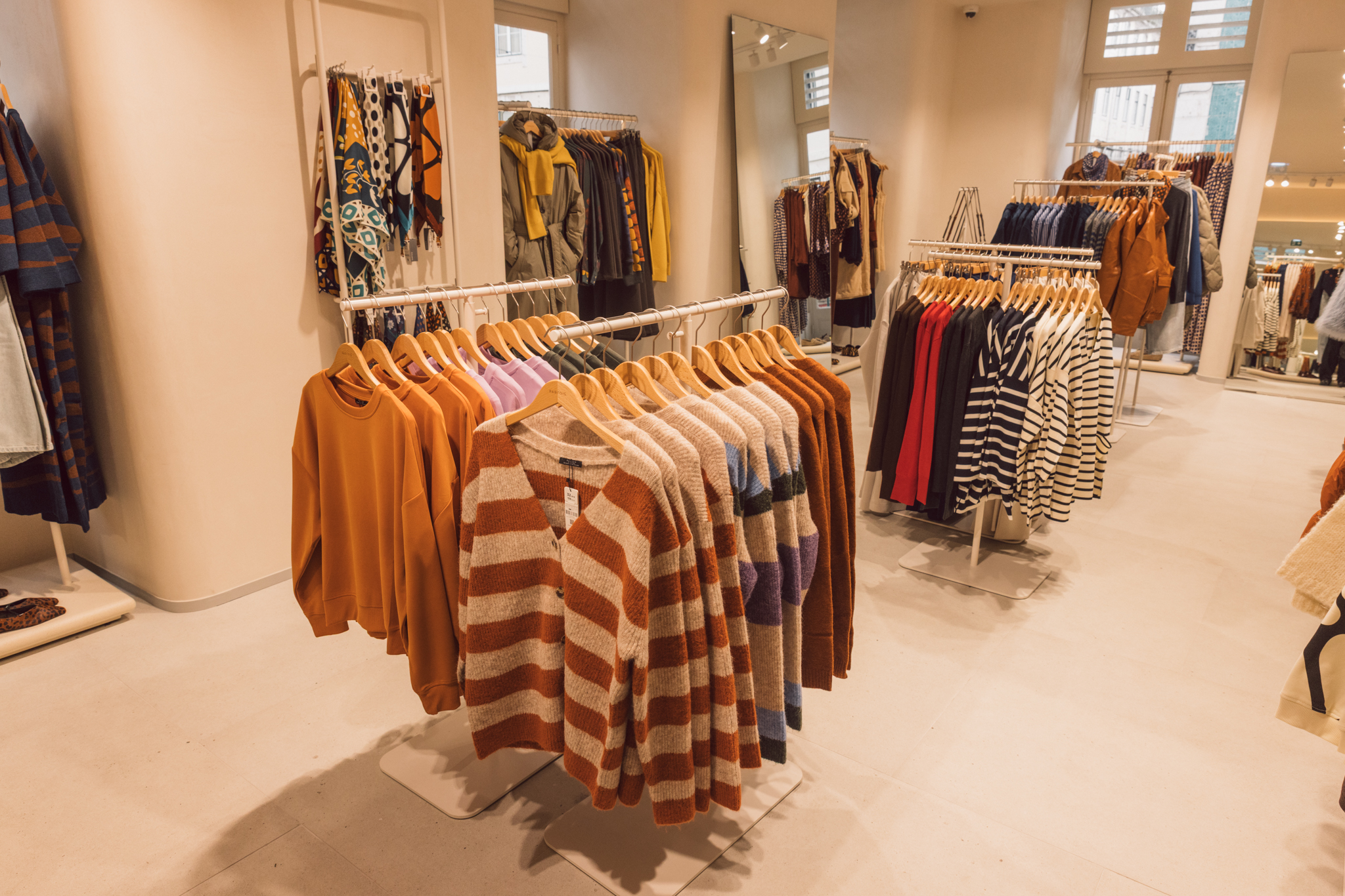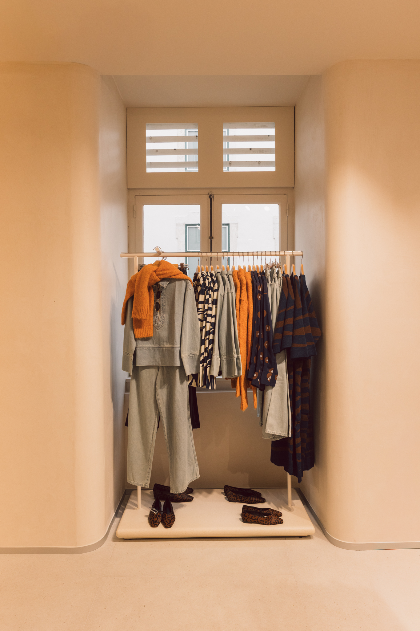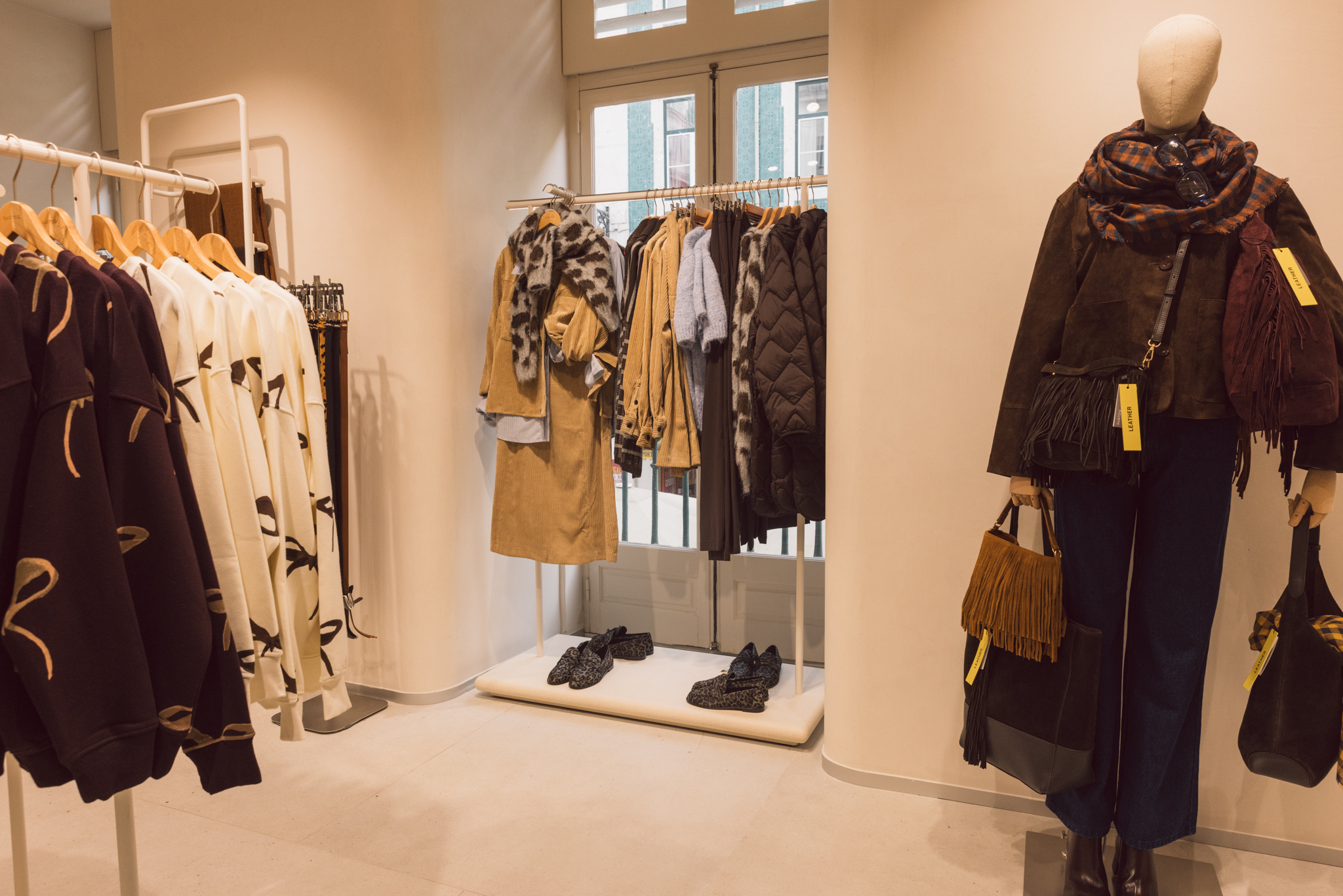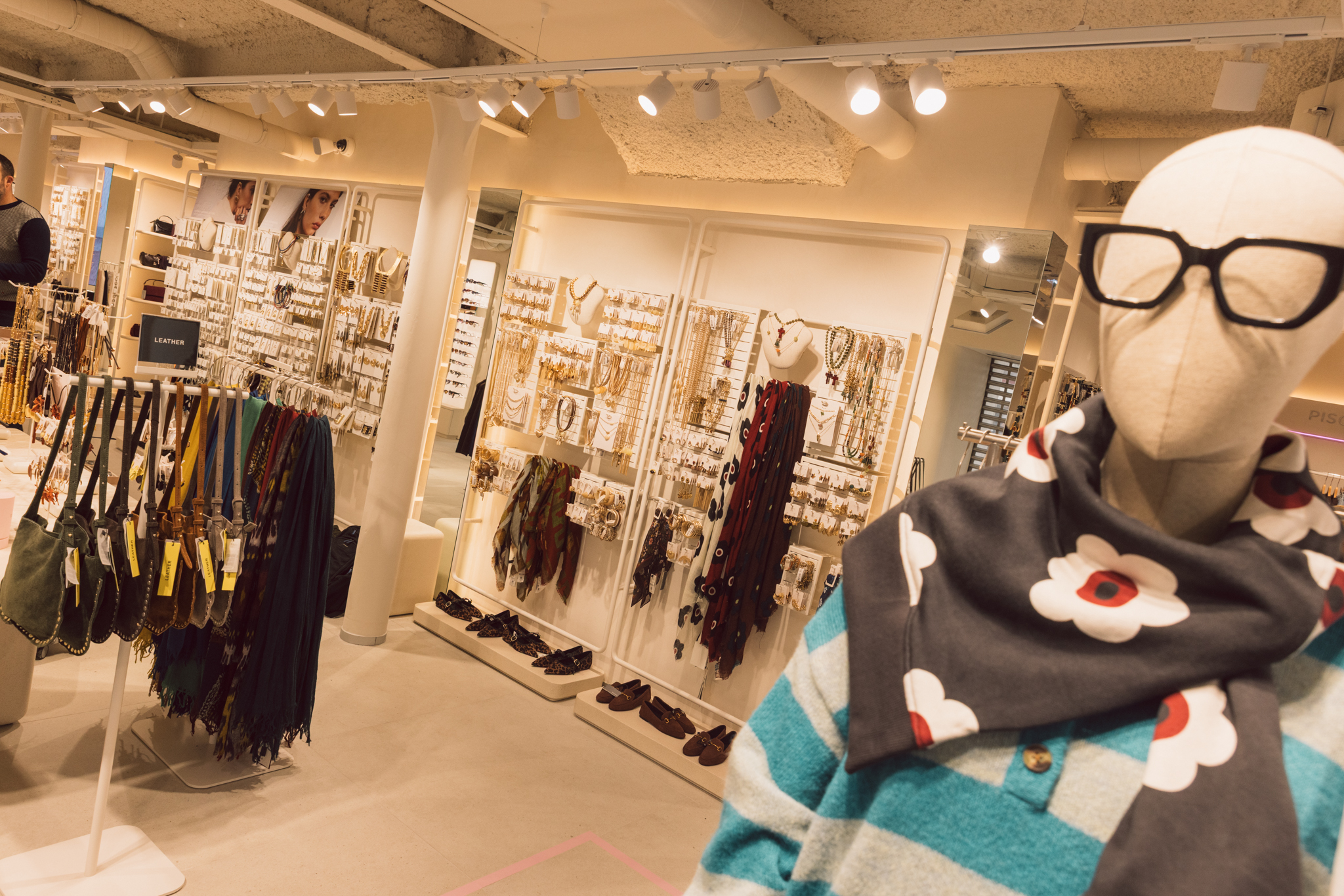 Com cerca de 265 metros quadrados distribuídos por dois pisos, a loja destaca-se pelo design de linhas suaves e paredes curvas, que criam uma sensação de fluidez e convidam a uma experiência de compra mais envolvente. A organização do espaço foi pensada para facilitar a circulação e a leitura das diferentes categorias, com áreas dedicadas a moda, acessórios, calçado e bijuteria.
