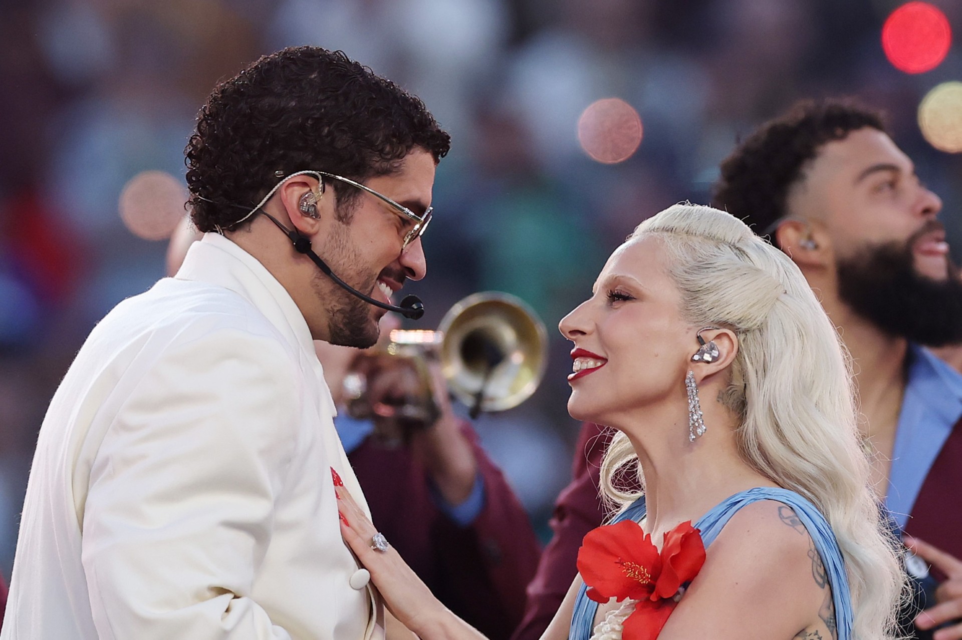Ao lado de Bad Bunny, Lady Gaga voltou a fazer o que melhor sabe: usar a moda como linguagem. No espetáculo do intervalo do Super Bowl, que aconteceu este domingo, 8 de fevereiro, no Levi's Stadium, a cantora partilhou o palco com o artista porto-riquenho e, para a ocasião, usou um look idílico: um vestido azul-claro cheio de simbolismo.
