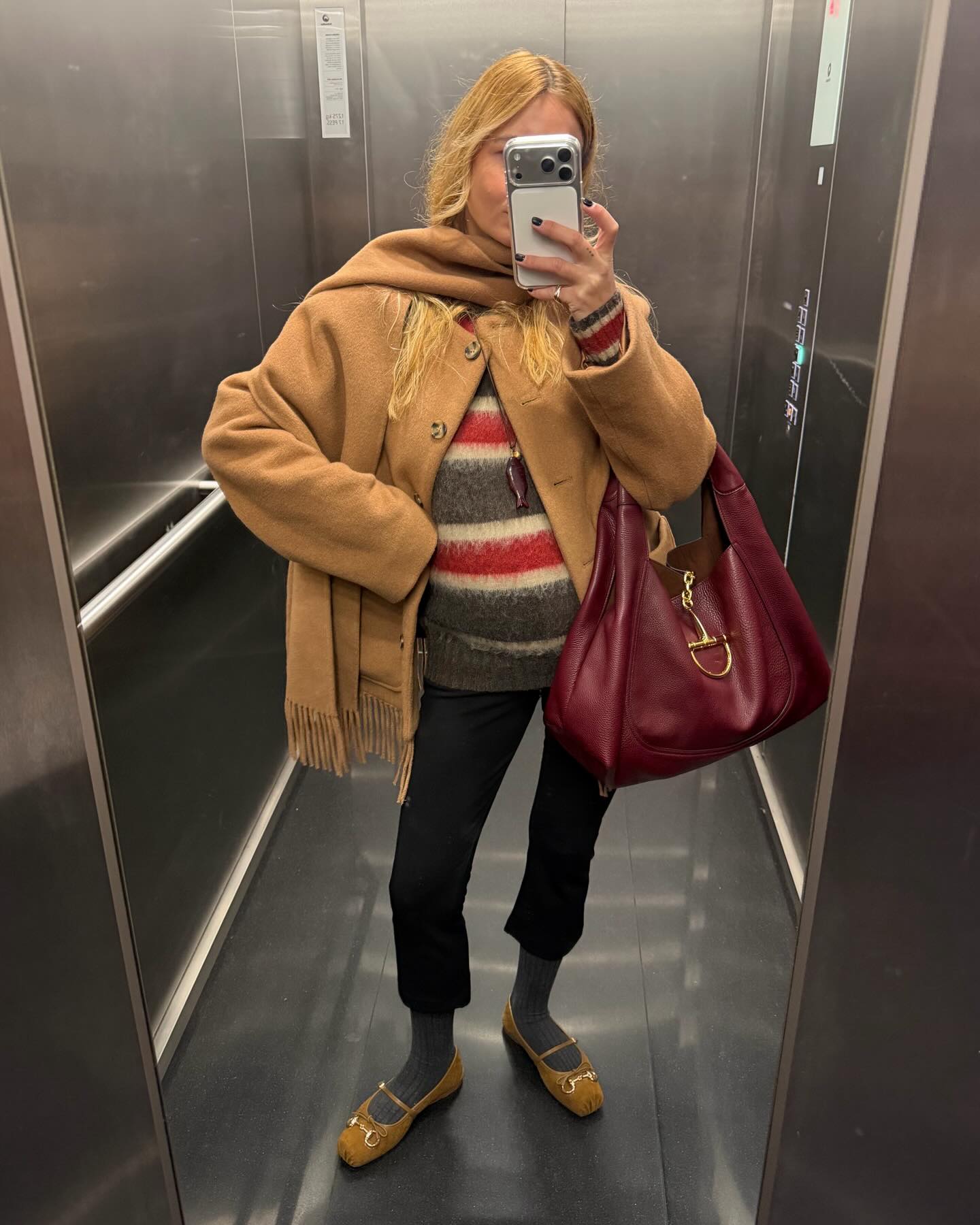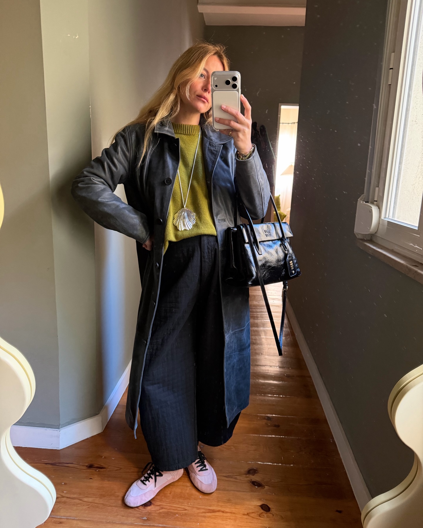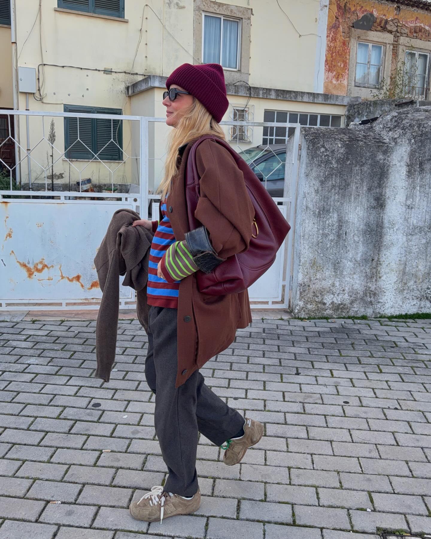 Entre looks que tanto evidenciam a barriga como outros que a disfarçam, Mafalda Patrício navega com naturalidade entre silhuetas ajustadas e propostas mais fluídas, adaptando-se também à estação. Agora, em pleno inverno, os dias pedem camadas mais quentinhas e isso reflete-se num guarda-roupa onde abundam as malhas, os cardigans e casacos oversized.
