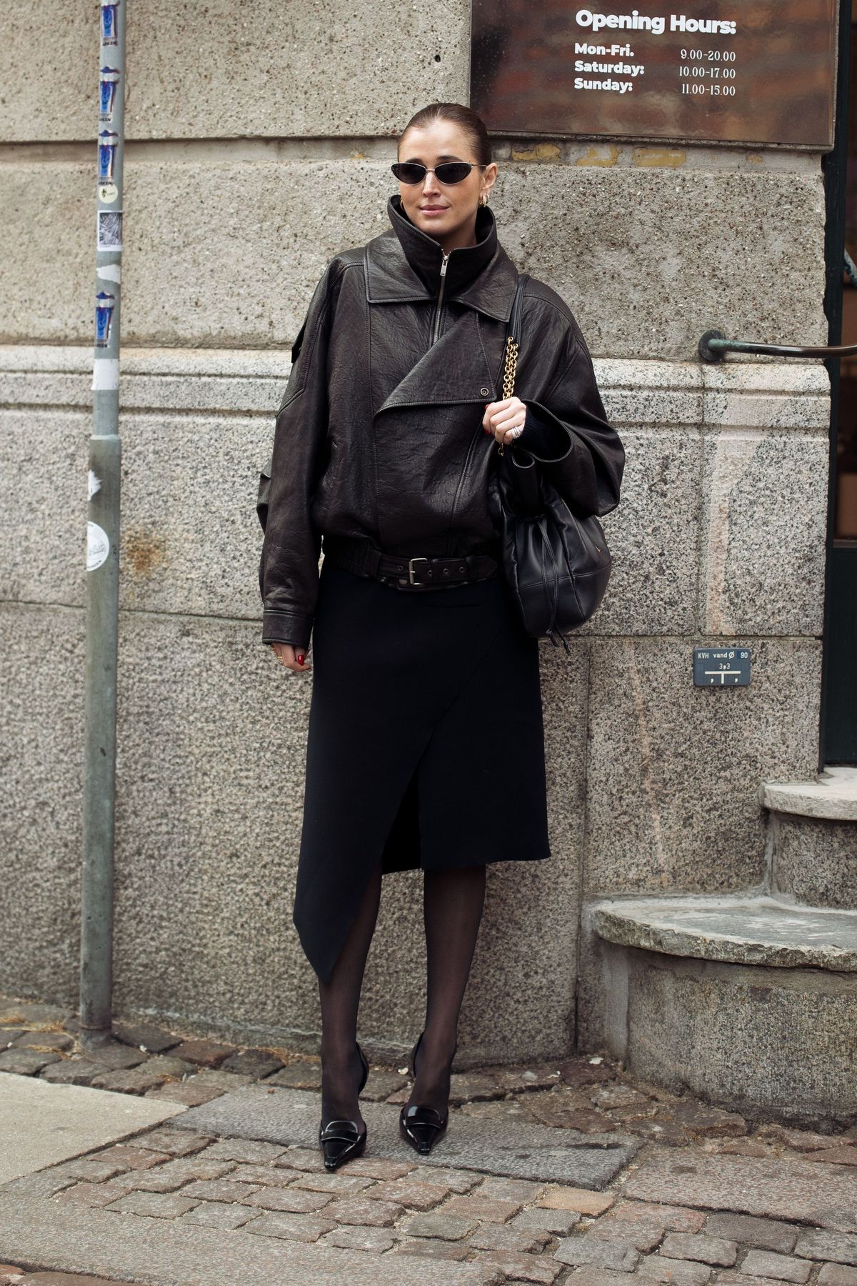 Como usar? Bem, a Altuzarra, por exemplo, mostrou um casaco oversized em pele, combinado com calças balão, duas tendências fortes a dialogar numa mesma proposta. A Khaite apostou numa versão buttery-soft em pele, num tom verde-azeitona, coordenada com uma maxi saia igualmente em pele. Já a Tibi deu uma nova roupagem ao trench coat, colocando-lhe esta gola vistosa.