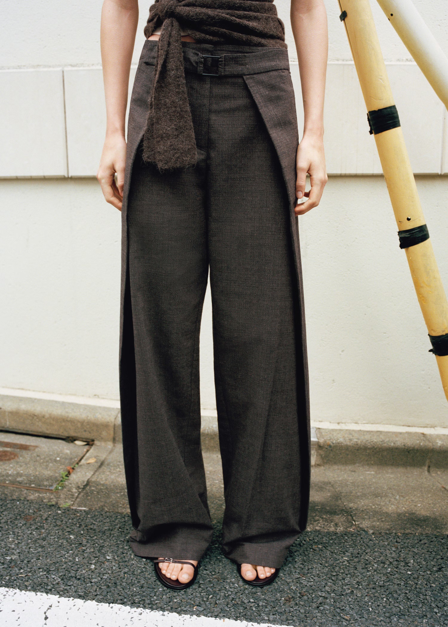 A paleta cromática segue a mesma lógica de contenção e sofisticação. Há tons suaves e esbatidos, como o beringela, o bege, o branco-pérola, os brancos suaves e vários pastéis, que são responsáveis por construir conjuntos coerentes e sem contrastes abruptos. A alfaiataria mantém-se como um pilar da coleção, a par de peças em pele e propostas versáteis que transitam facilmente do dia para a noite.
