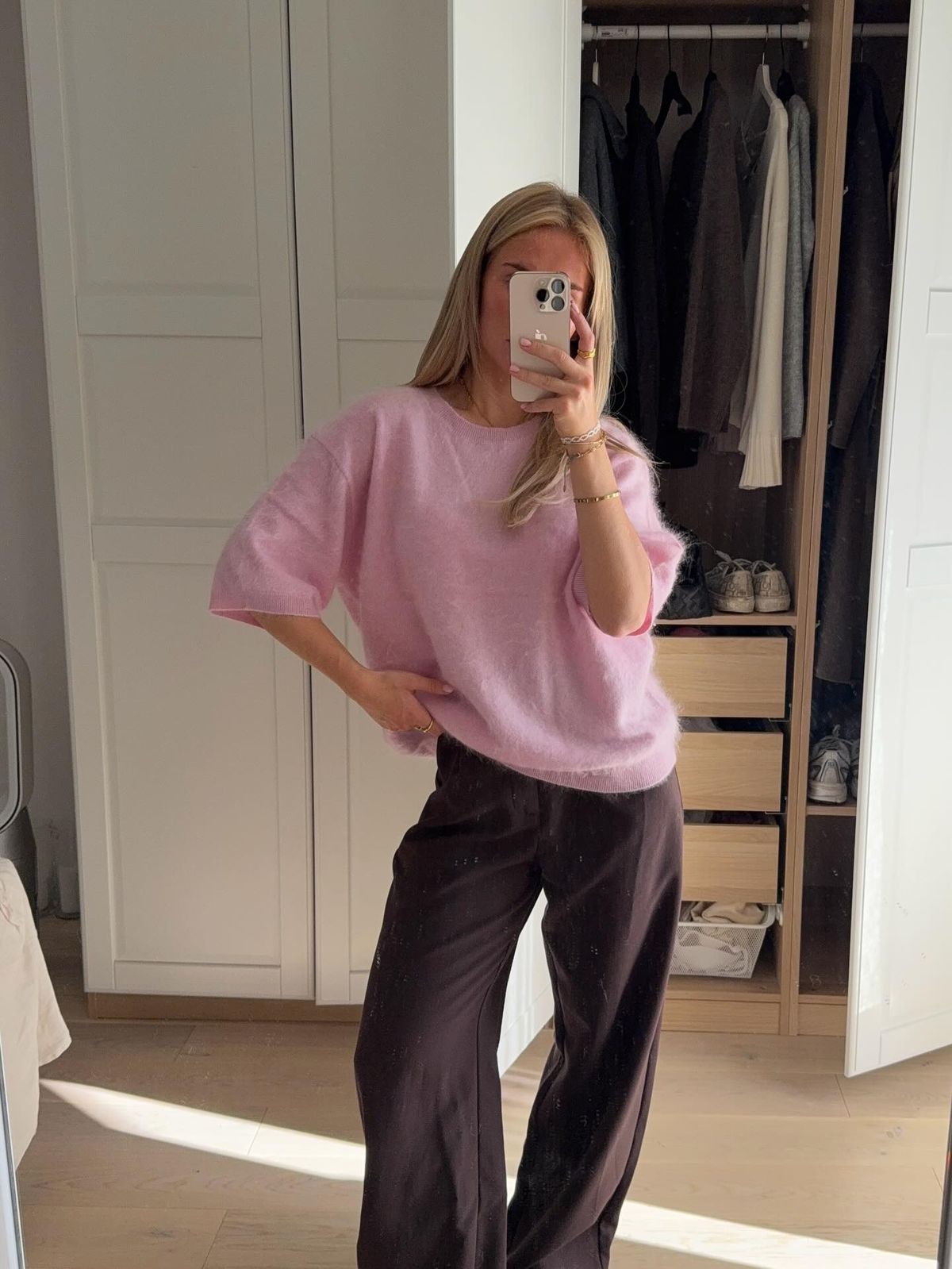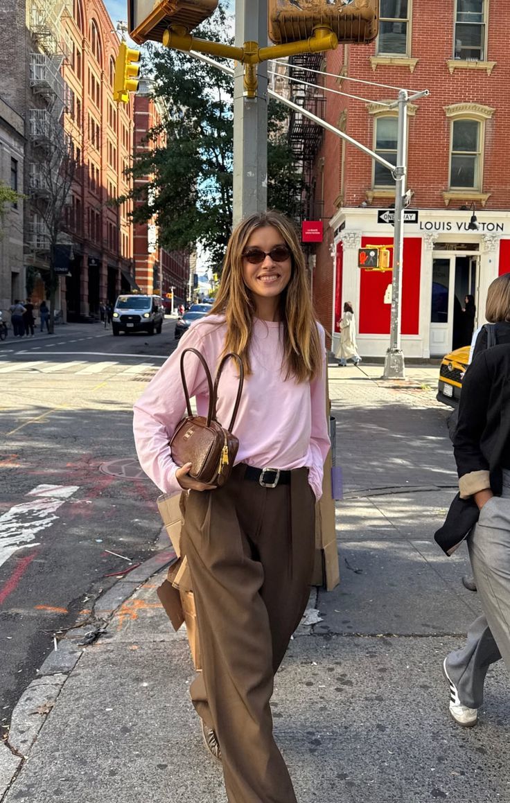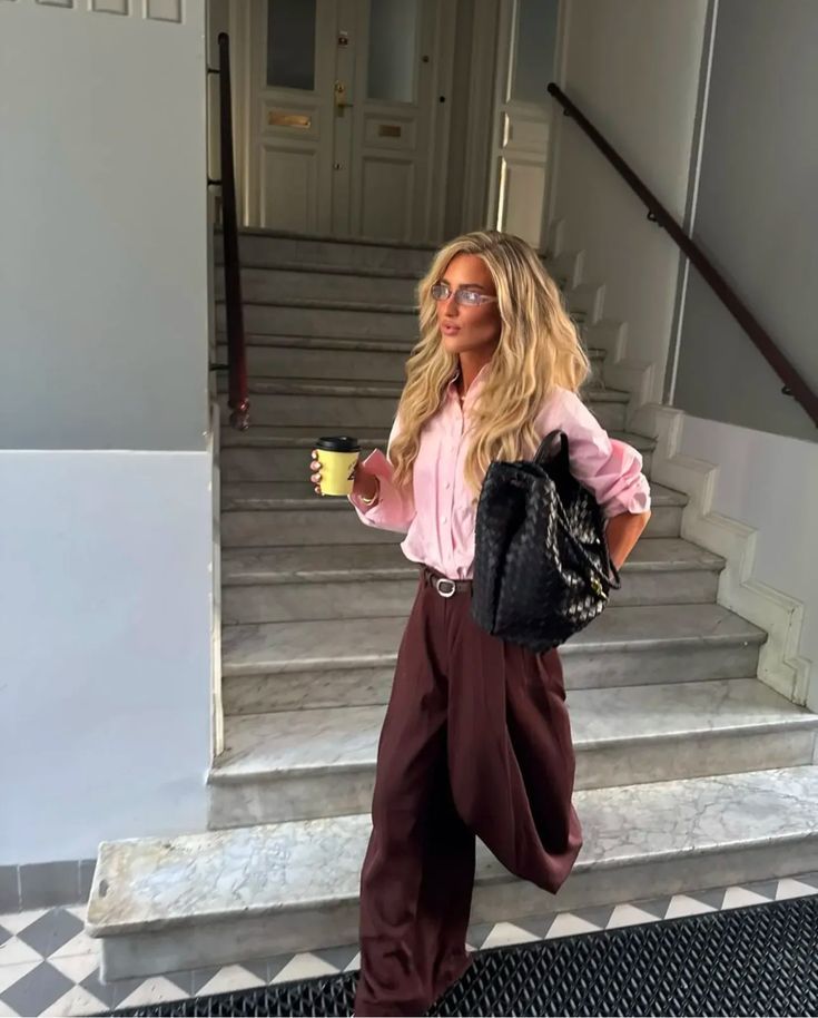 Uma das combinações mais elegantes e subestimadas. O rosa é uma forma de amenizar a robustez do castanho, enquanto este lhe confere maturidade e sofisticação. A utilização desta dupla culmina num look equilibrado, feminino sem ser óbvio, que funciona tanto em contextos formais como em propostas mais casuais, dependendo dos cortes e dos materiais escolhidos.