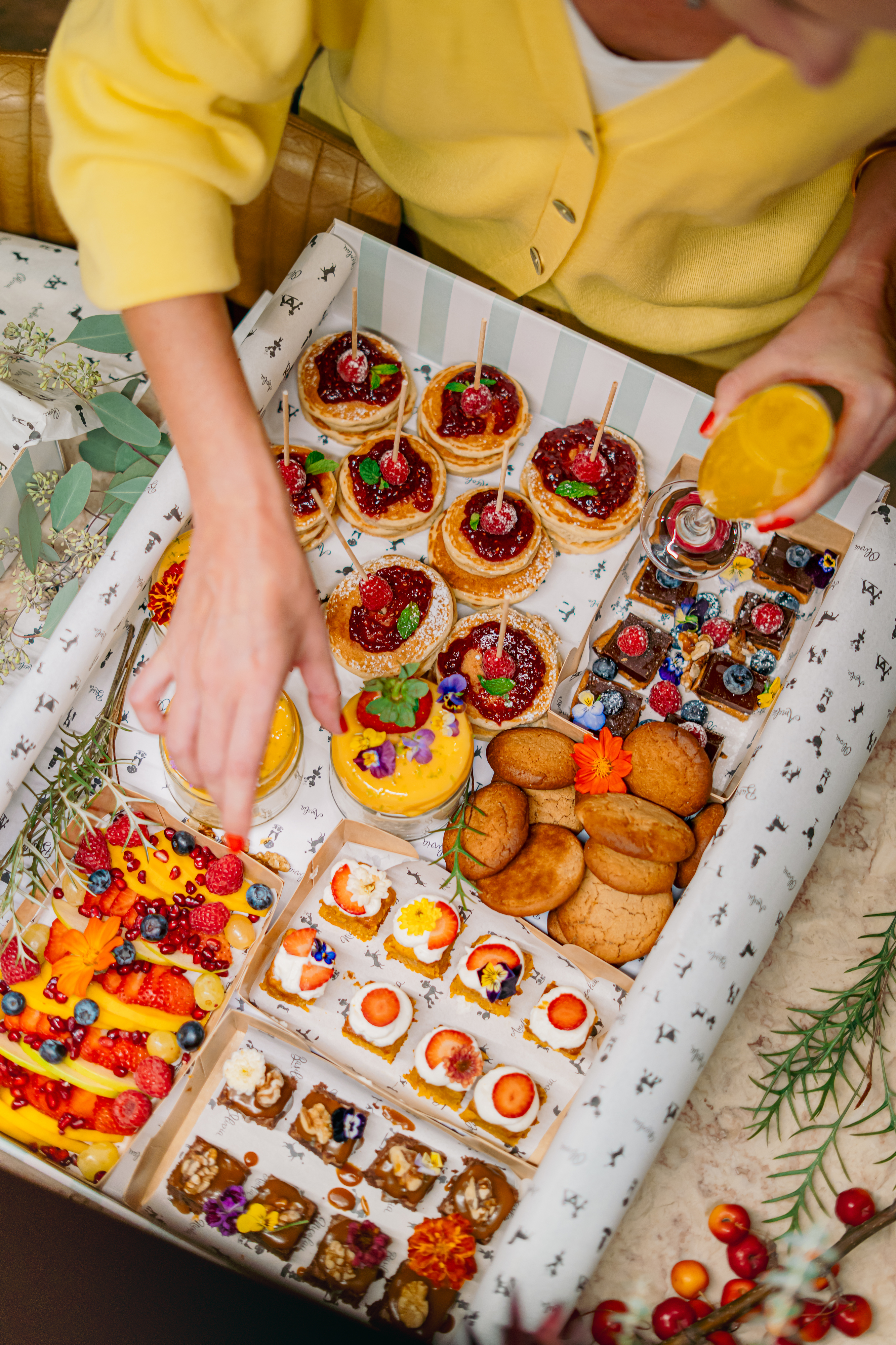 Já a Dessert Box, por 136€, é a opção a ter em conta para adoçar o jantar de Natal, já que traz sobremesas irrecusáveis, como pavlovas, bolo de cenoura, brownie vegan, mini panquecas com frutos vermelhos, quadradinhos de manteiga de amendoim, frutas e cookies.