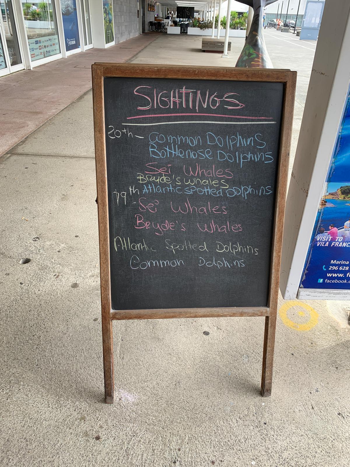 Nestes passeios, já conseguiram observar 29 espécies diferentes. "Dá para ver aqui um terço das espécies de cetáceos do mundo", segundo a bióloga marinha Georgina Cabayol. Durante a nossa vez, num passeio mais curto que o habitual (que tem 2h30/3 horas), vimos golfinhos molares, golfinhos comuns e golfinhos pintados do Atlântico, bem como baleias-sardinheiras, as terceiras maiores, que podem atingir os 18 metros.