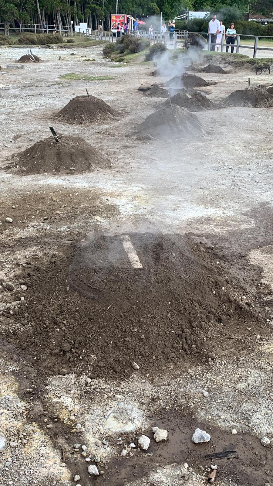 Durante seis a oito horas, estes elementos cozem entre 60ºC e 90ºC. Cada restaurante tem o seu buraco (e também pode alugar um por cerca de 3€). Os locais não pagam para o fazer. A atmosfera cheira a enxofre e é possível que o cozido tenha também um gosto específico adquirido.